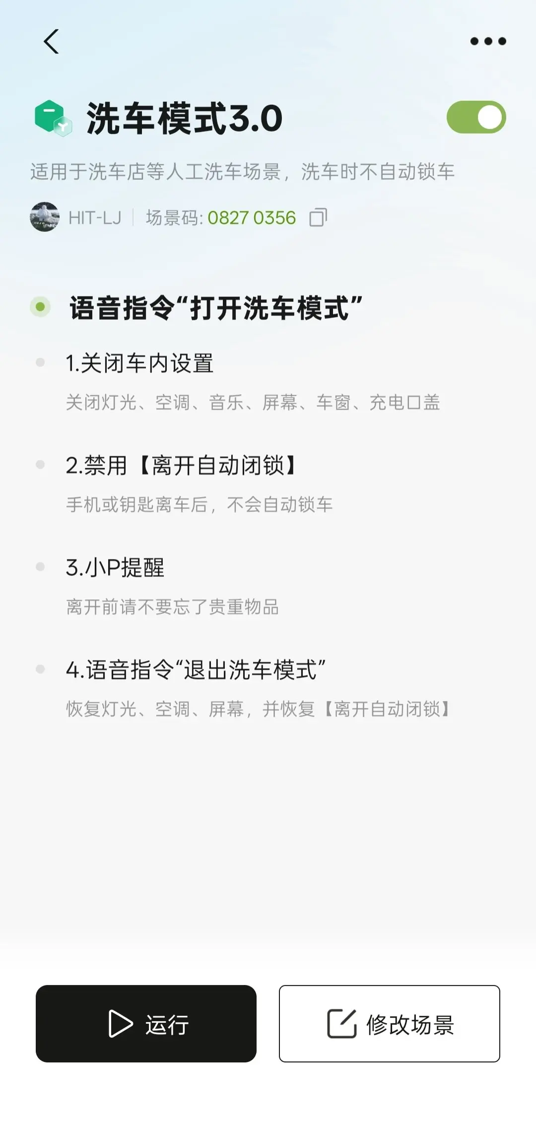 洗车的时候,后视镜经常折叠关闭,有了洗车模式这个功能场景,洗车时,就可以呼唤小P打开洗车模式,这样就省去了很多烦恼。