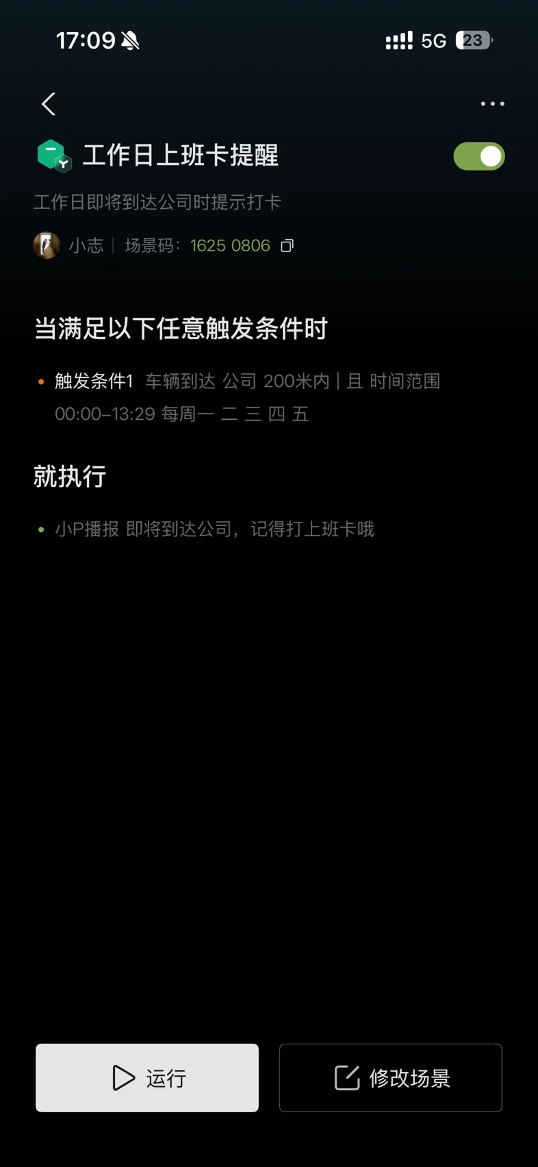 目前5.8.5版本下,通过两周的使用,发现智慧场景有很高的可玩性,可以个性化定制各种使用场景!目前最常用是以下三个: