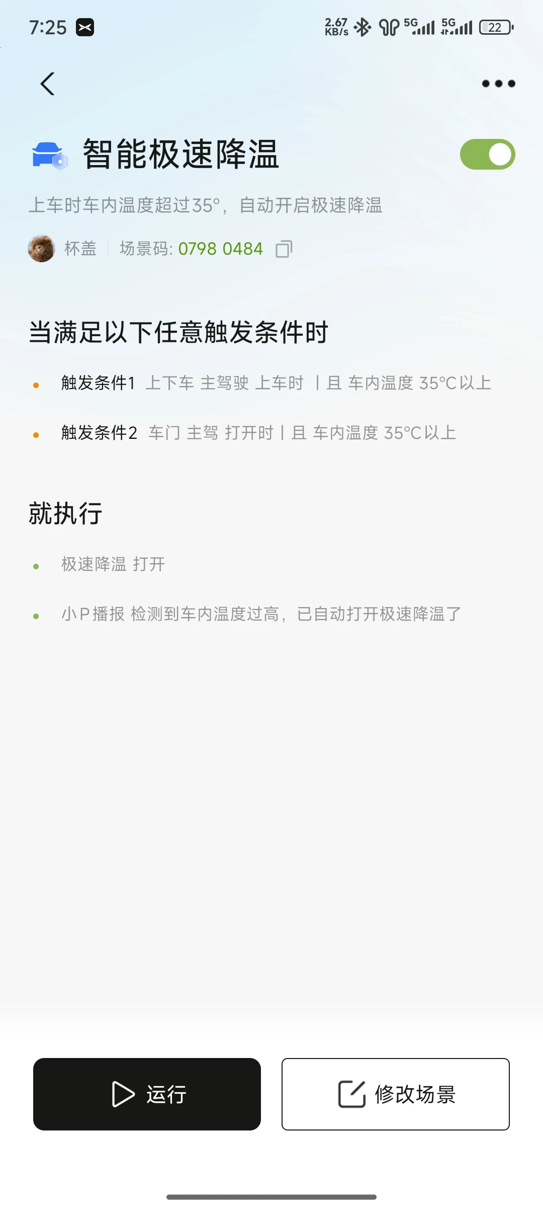 我最喜欢的小鹏的智能座舱的功能就是智慧场景了,特别是下面的四个: