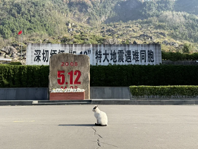 我就知道我有的车后,一定会去一次地震遗址,那北川回想17年前的灾难,把自己又拉回了那一年自己受灾的岁月,时间过得好快,转眼我都成了那个可以自己开车的大人了。在纪念广场,神奇的有一只奶牛猫一直守在那附近,有种它是某种神兽的感觉。太阳晒着后背,非常舒服,而奶牛猫非常通人性的跑过来求摸摸