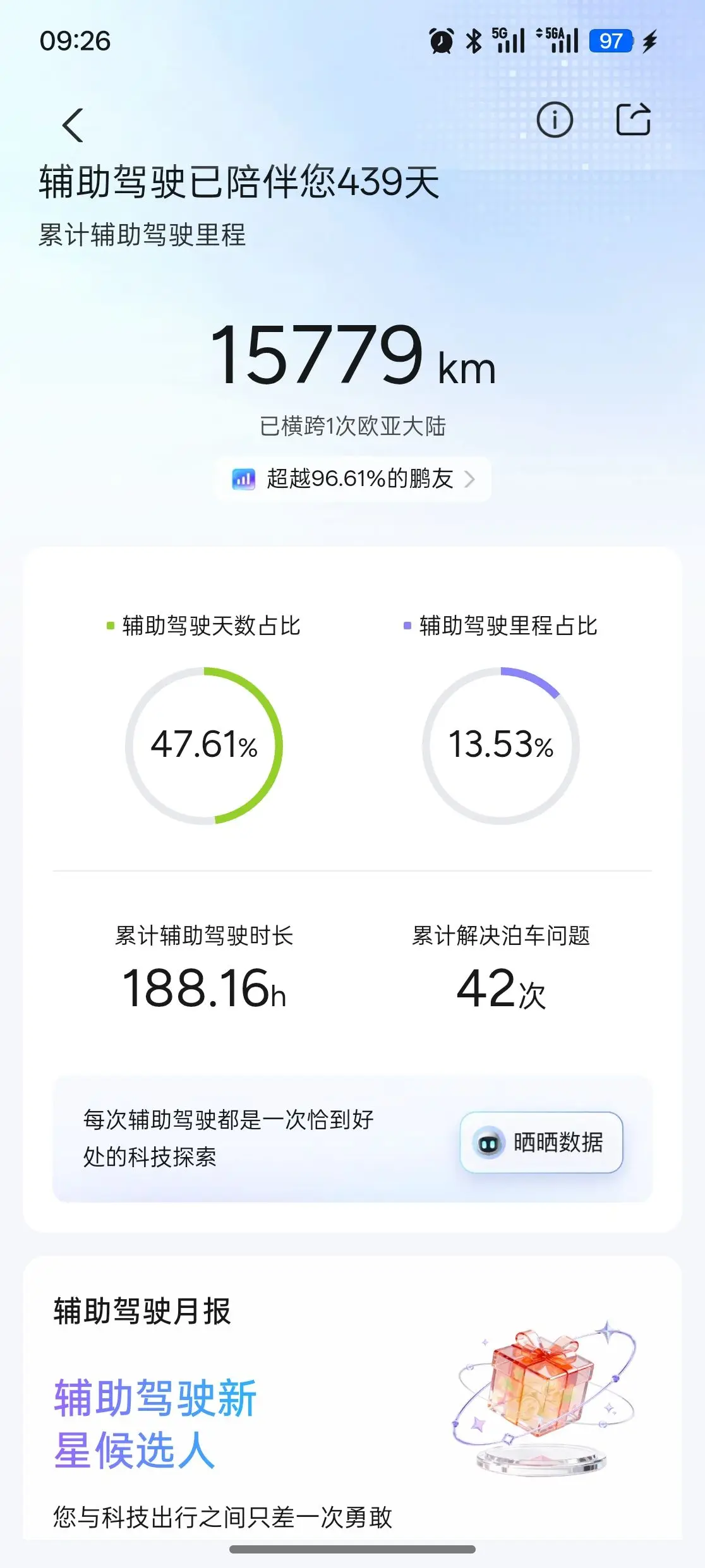 #我的2025小鹏印记# 车轮碾过421天的时光,5座城市的风景都藏在了轮胎的纹路里。今天在路边捡起一片枫叶,忽然发现它的脉络和走过的足迹那么像。辅助驾驶188小时的陪伴,42次贴心提醒,还有那些闪闪发光的勋章,都是这段旅程最好的见证。每一次出发都有新的期待,每一段路程都值得被铭记。