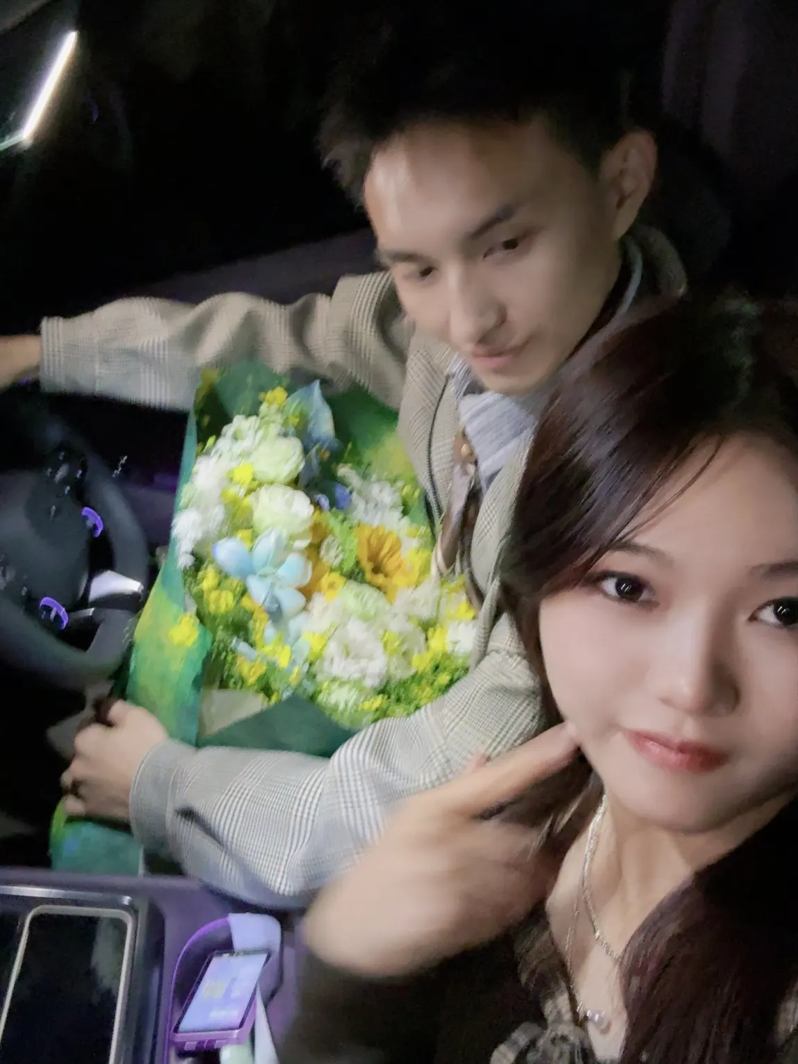 #我的副驾故事# 28岁的生日,在我的P7里收到人生的第一束花。车内化妆镜、阅读灯都为我们的合影打光助力,P7出色的音响播放着林俊杰的《Always Online》。在很久很久之前我梦想有一天开着自己的车车,载着自己最爱的人和公路车,有她陪伴着我完成环南澳岛骑行。如今,车车P7有了,她如梦幻般出现了,后排和后备箱也塞着公路车和她送我的玲娜贝儿,终于在这么一个周末完成了环南澳骑行。岛内弯弯曲曲的道路开启辅助驾驶不要太爽了吧!从汕尾到南澳一路用着官方的光年麦克风唱着歌,三个小时一下子就度过了。