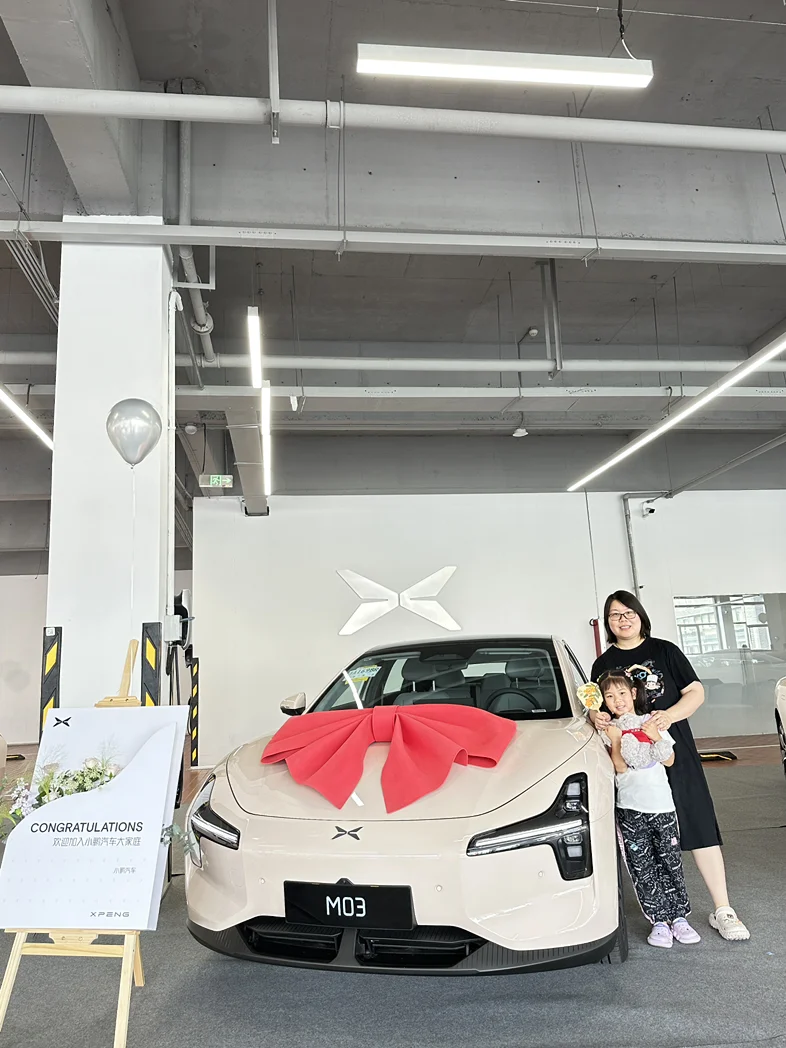 #我的2025小鹏印记# 作为杭州地区首批m03车主,交付仪式很隆重。作为生日礼物对车的颜值很喜欢,孩子喜欢的不得了。性价比确实很高该有的配置也都齐全,空间也大,不影响姐妹俩嬉闹。基本出行都开小鹏了,一年内跑遍了好多城市续航杠杠的😘