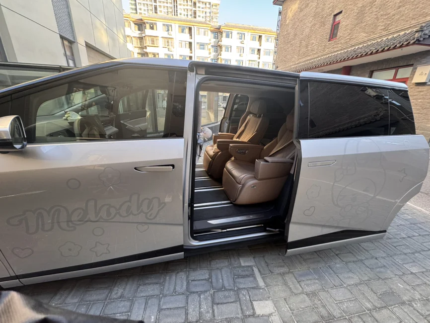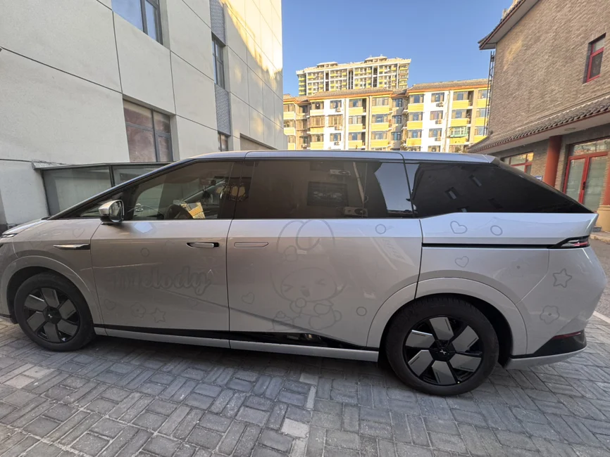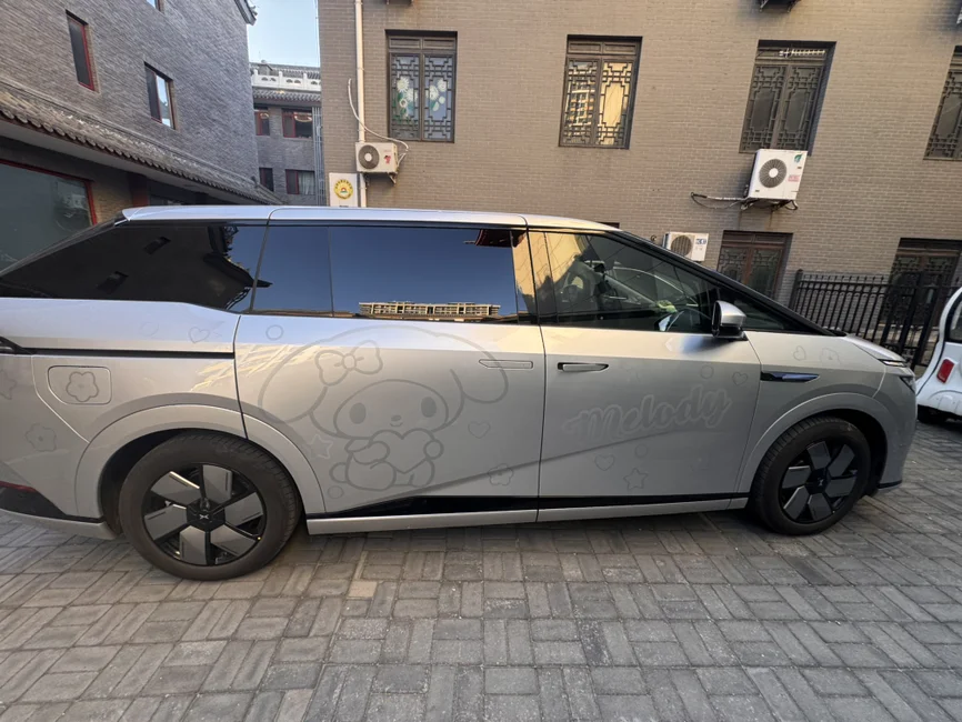给爱车贴了孩子最爱的美乐蒂!这个银色的拉花太适合小鹏X9的银色系了!还有尾部的车标我也很喜欢!