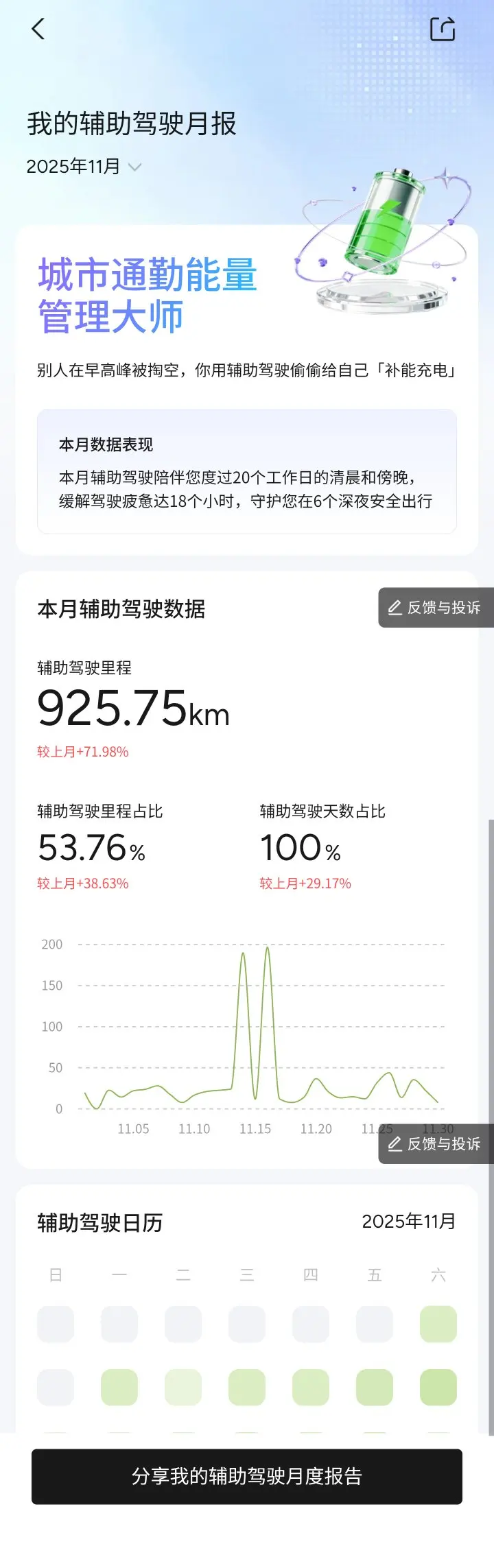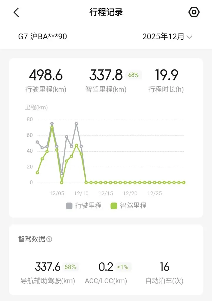 #我的2025小鹏印记#2025,把2024首发的小鹏P7+置换成了三图灵的G7ultra,希望在智驾时代一直紧跟最前沿的技术和体验。 体验下来G7很超预期,底盘提升大,而且arhud很好用,当然最牛的还是智驾,11月5.7.8智驾占比50%,12月5.8.5智驾占比70%,非常期待VLA2.0,希望每月智驾占比站上80%,迎来汽车的IPHONE4时刻。