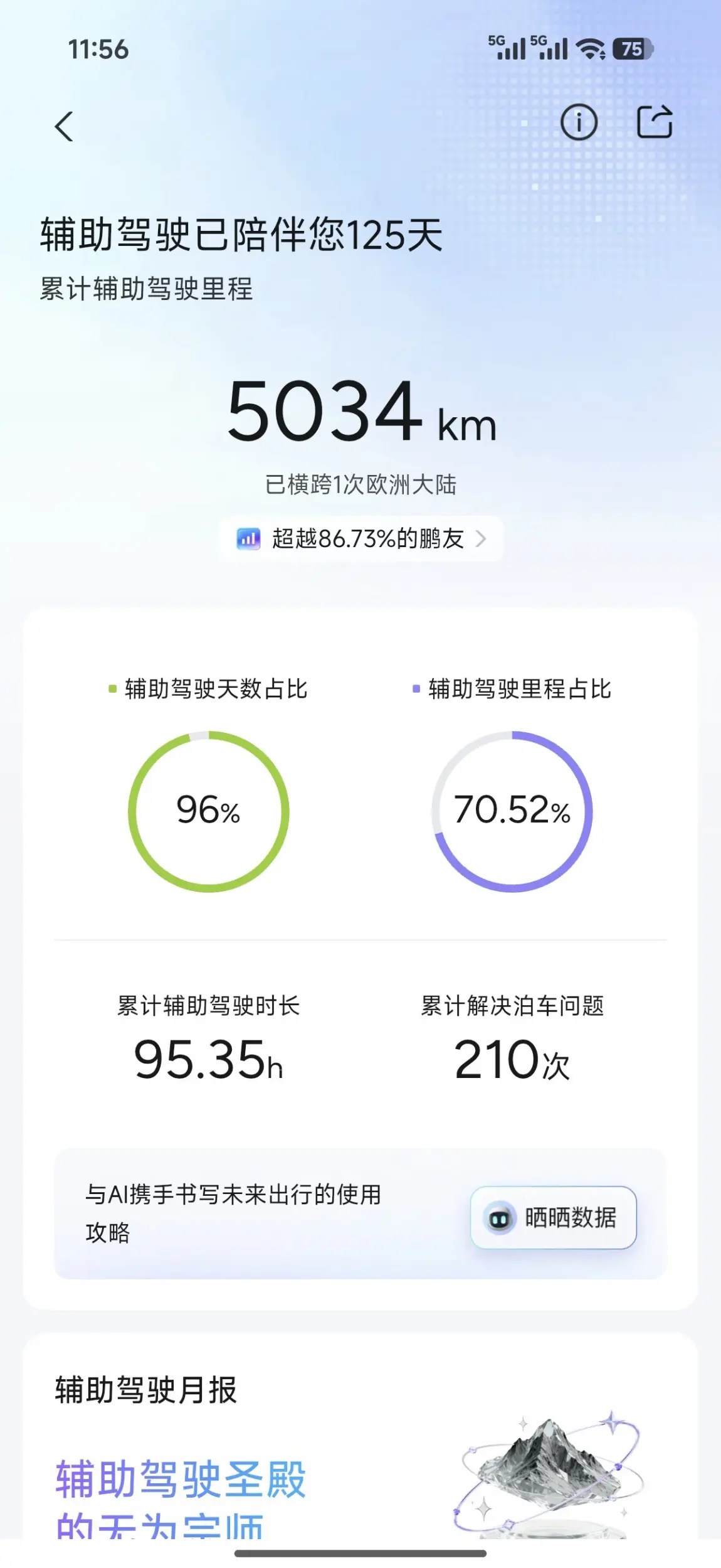 #我的2025小鹏印记# 才发现G7提车仅仅125天,跑了七千多公里,智驾五千多公里,无论是高速还是城市道路都可以放心交给小P,自己看着就行,比起之前的定速巡航简直不要太爽,并且前几天OTA车位到车位用起来更方便了,总的来说,上车就是到家了。