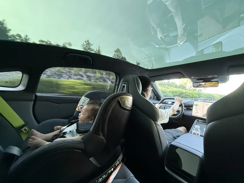 #我的2025小鹏印记# 周末,用NGP带宝宝“兜风”成了我们的新仪式。一驶入平稳路段,他就在后座安全座椅里停止哭闹,睁大眼睛望着天窗流动的云。车内近乎无声,只有星光屏保在他眼底闪烁。这辆新P7不像车,更像一个懂得婴语的智能摇篮——用极致平顺读懂他的睡眠,用温柔光影安抚他的好奇。原来最好的科技,是让新手父母的慌乱,变成一家三口的宁静时光。