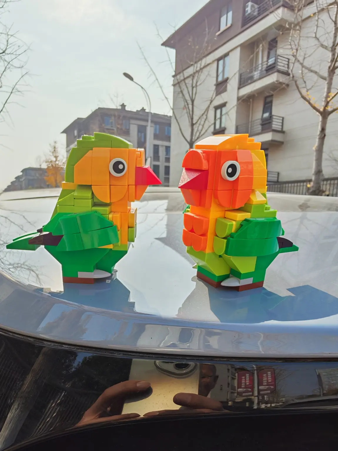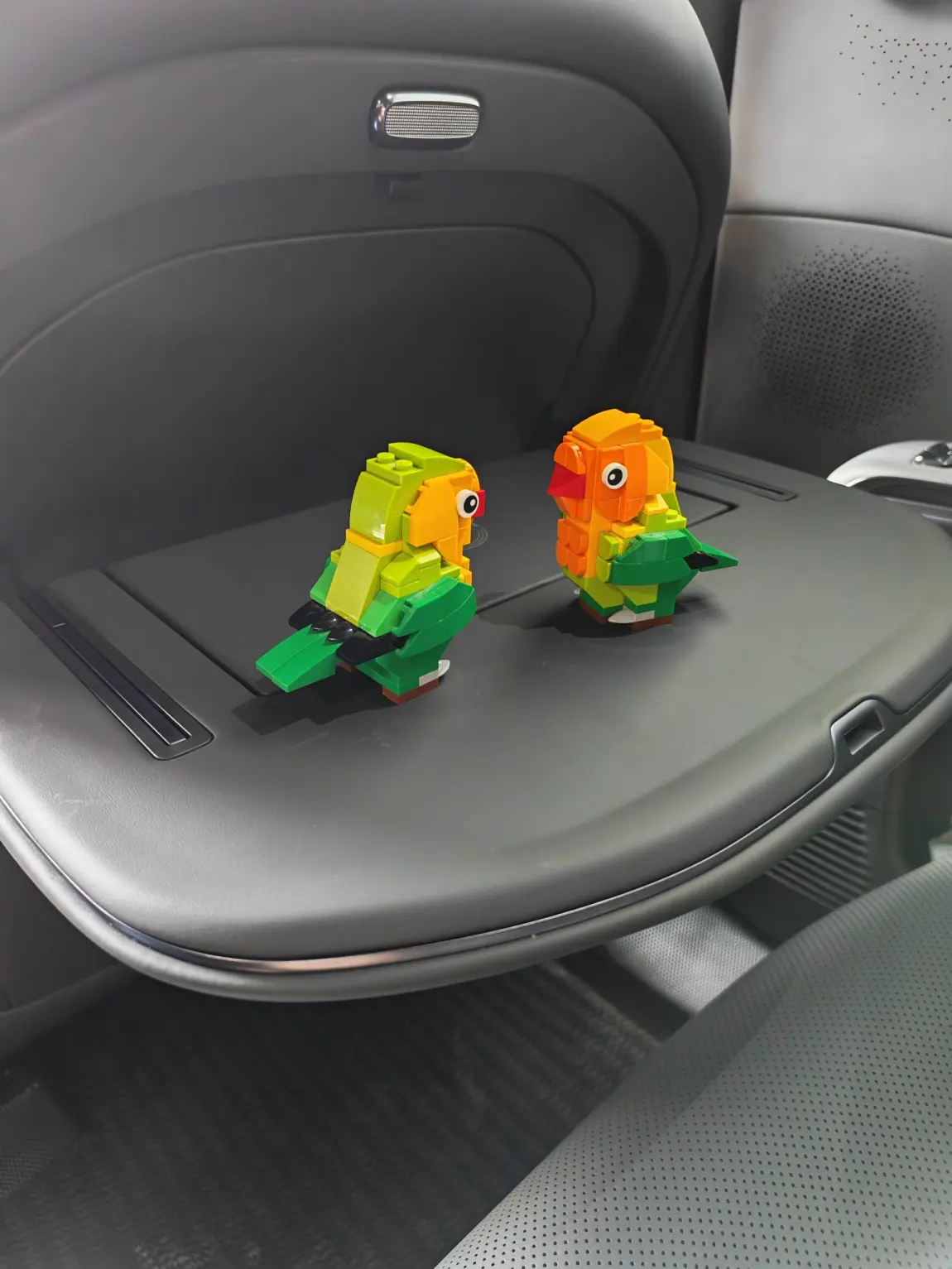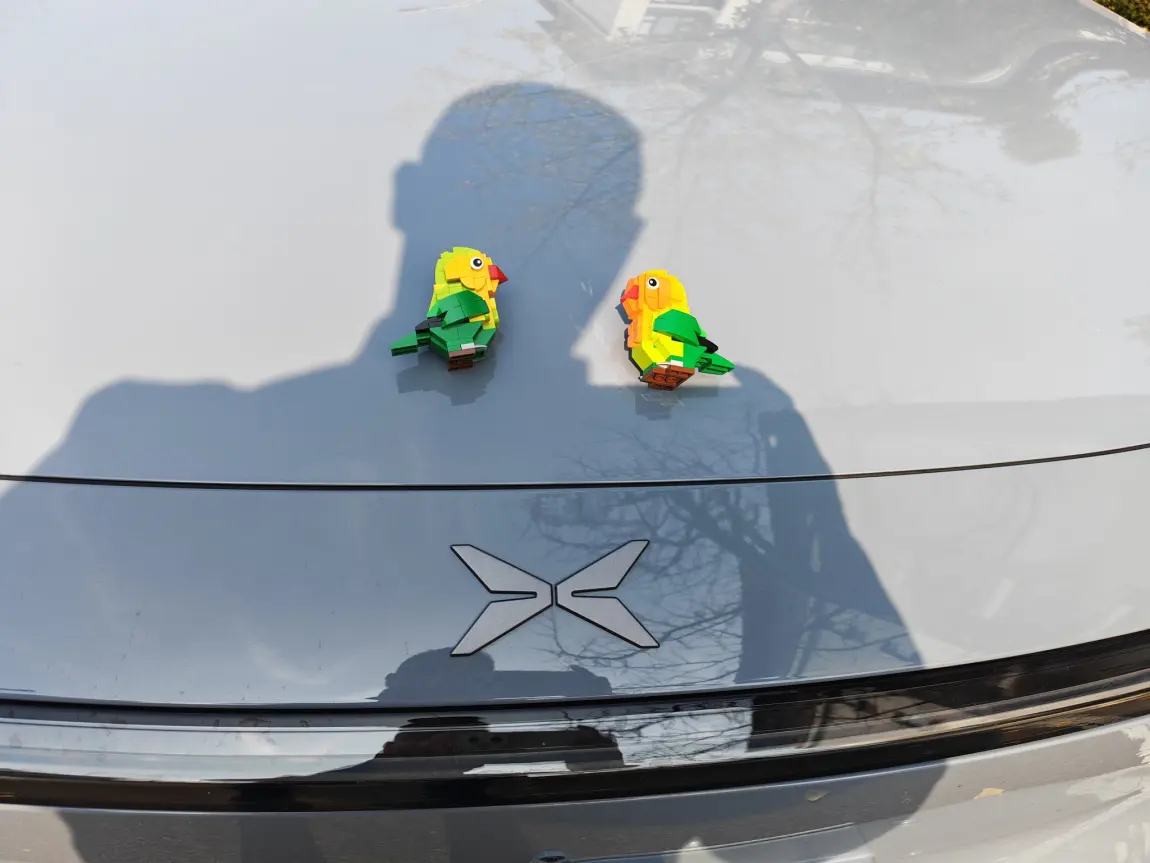 今年入手了小鹏G7,突然想着把这两只乐高小鸟挪到车里试试。先摆在中控台和车机屏同框的位置,色彩鲜艳的乐高小鸟和简约的内饰意外契合;放到扶手箱上,小小的摆件让车内多了份童趣;后排小桌板也成了它们的“小舞台”,尺寸适配得刚刚好;甚至把它们摆到车头小鹏logo旁、车尾的车身上,和车身的线条搭配起来也毫无违和感。