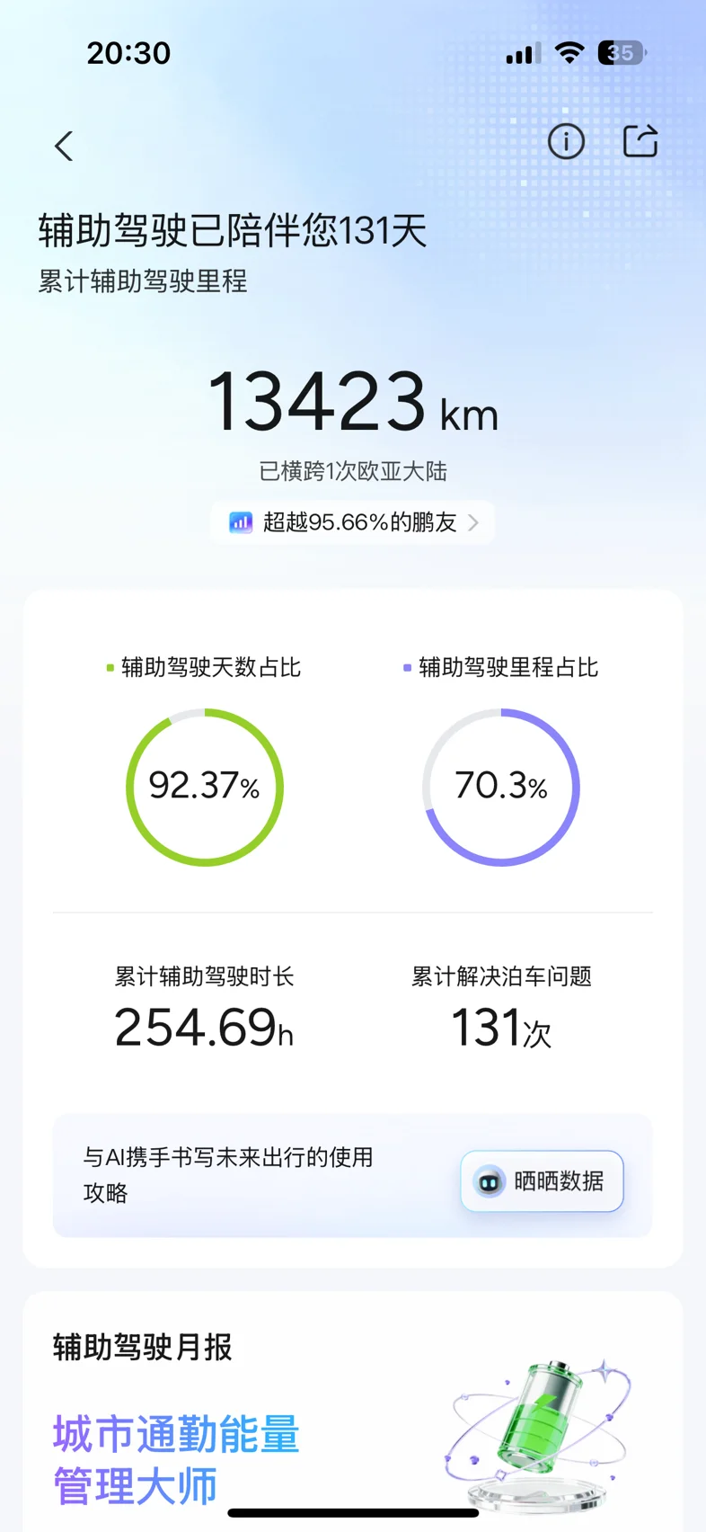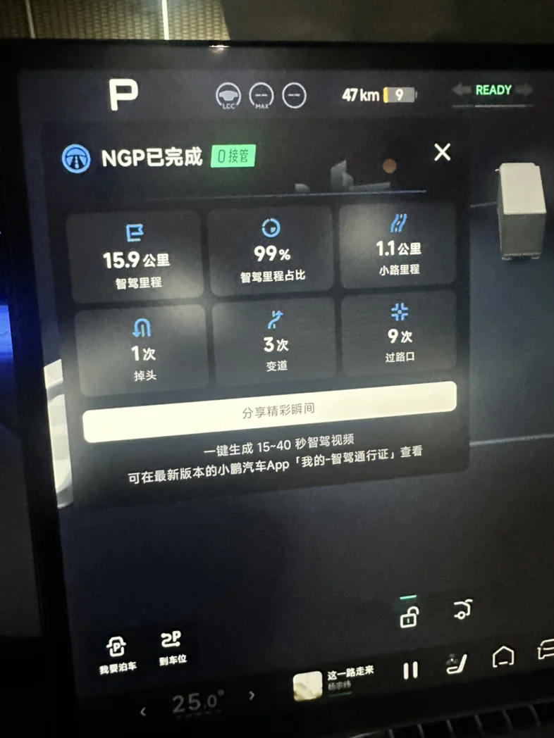 #我的2025小鹏印记# 8月提了小鹏G7到现在开了差不多19000公里,NGP真的是一个好司机,让我开着更轻松,还可以在周末去公园喝喝茶聊聊天,在路上无聊还可以玩一下路怒消消气嘿嘿,回家路上经常可以实现0接管,希望小鹏明年智驾更丝滑🤓