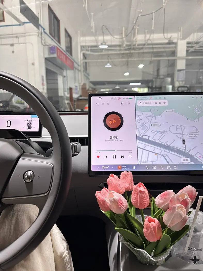 为了让车内更有生活气息,我在中控摆上了粉嫩的郁金香,每次坐进车里,看到这份小美好,连通勤的疲惫都消散了。它的智能中控屏更是宝藏,一边导航一边听喜欢的歌,分屏操作丝滑又便捷;智能辅助驾驶在高速上帮我缓解了不少疲劳,露营外放电功能还让我们和鹏友们的郊外野餐变得超惬意,煮茶、烤串都不在话下。
