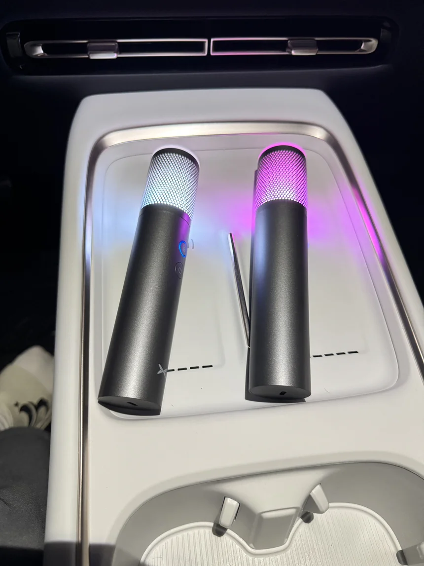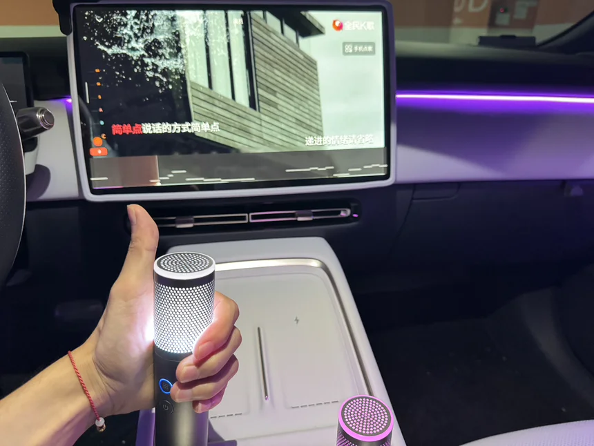#我的2025小鹏印记# @社区活动小姐姐 最爱这一年在小鹏p7+唱歌的日子!ngp用着特别舒心,特别是自动泊车真的太棒了!夜晚打开氛围灯状态拉满~小鹏活动送的k歌vip也十分舒服,话筒颜值超高,妥妥的移动打卡神器,嘿嘿😁快到新的一年了,希望和小鹏一起加油,冲冲冲!