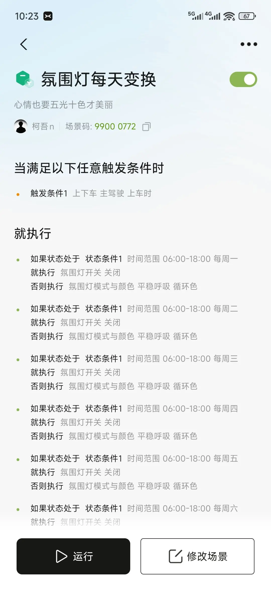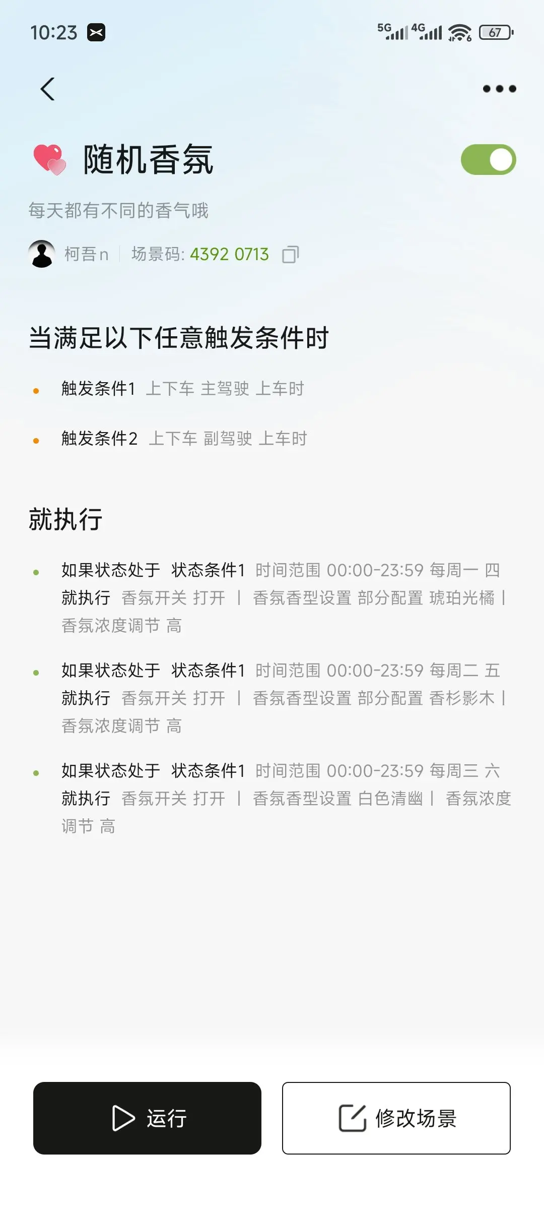 小鹏智能场景也太懂仪式感了!🎐上车自动点亮氛围灯,香氛同步缓释,上车即拥治愈氛围~下车自动关闭,细节拉满还不浪费!智能适配日常,每段出行都有舒适陪伴~@鹏友俱乐部 @智能座舱小助手 #2025年我最喜爱的智能座舱功能#