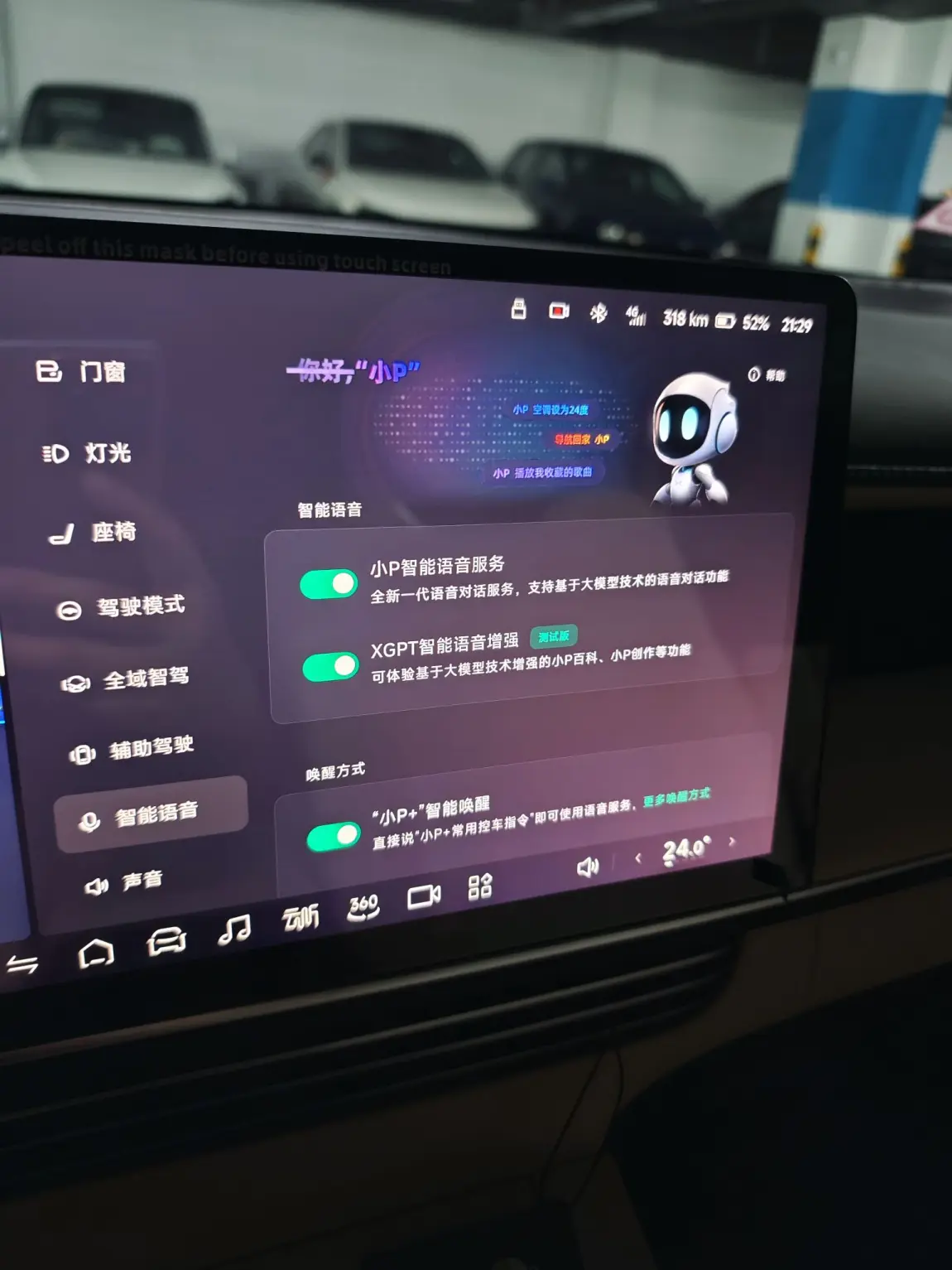 1)首先呐,作为智能语音选手的应答人“小P同学”, 在我们日常开车过程中可以随时呼唤喊一声“你好,小P同学,帮我播放音乐&打开空调,空调设为24℃”,小P同学会立即帮我们执行,不用自己挪开驾驶视野,也不用自己再手动点击操作,这个功能是油车目前不具备的;