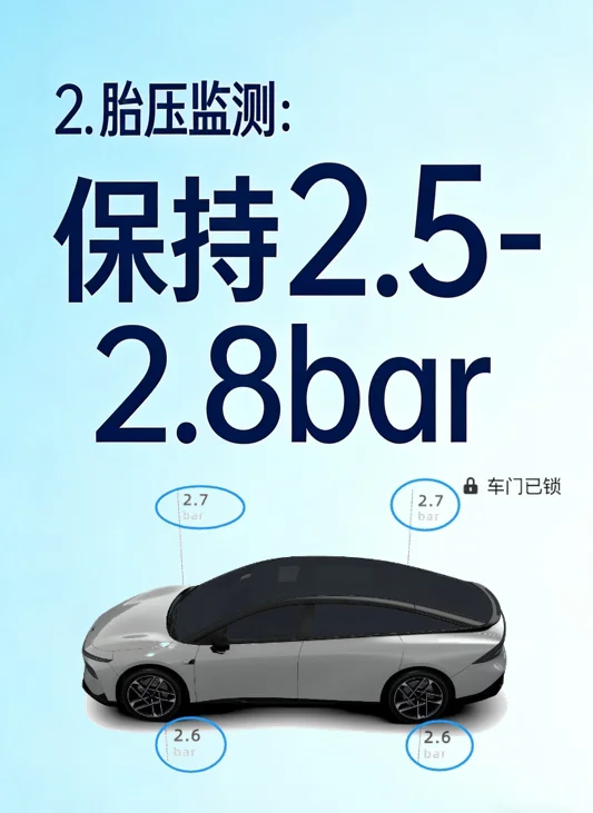 所以我们每天要检查下🛞气压,确保胎压在2.5-2.8bar。