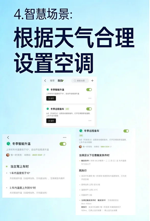 鹏友们,我们的🚗P7+可是高科技的新能源车!有个非常好用的功能智慧场景,这个提供了很大的便利性!推荐两个我冬天❄️使用的场景: