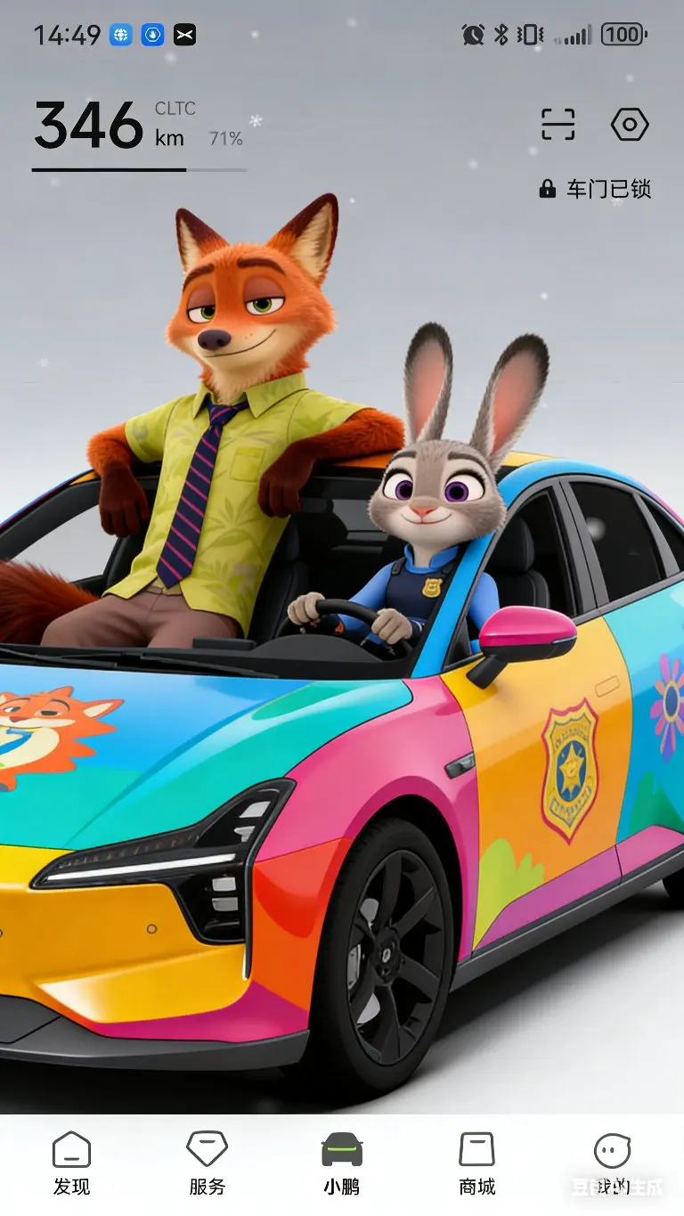 1. 准备素材与精准写指令:先备好高清的原车辆界面图,避免模糊影响融合效果。指令要写清关键信息,比如“以这张小鹏汽车界面图为基础,保持背景、比例不变,尼克背靠车身,朱迪坐在主驾开车,车身采用疯狂动物城朱迪蓝#1E3A8A、尼克橙#F97316配色,角色与车辆光影协调”,减少AI生成偏差。新手直接用这个指令上传图片到豆包,就能快速出图。