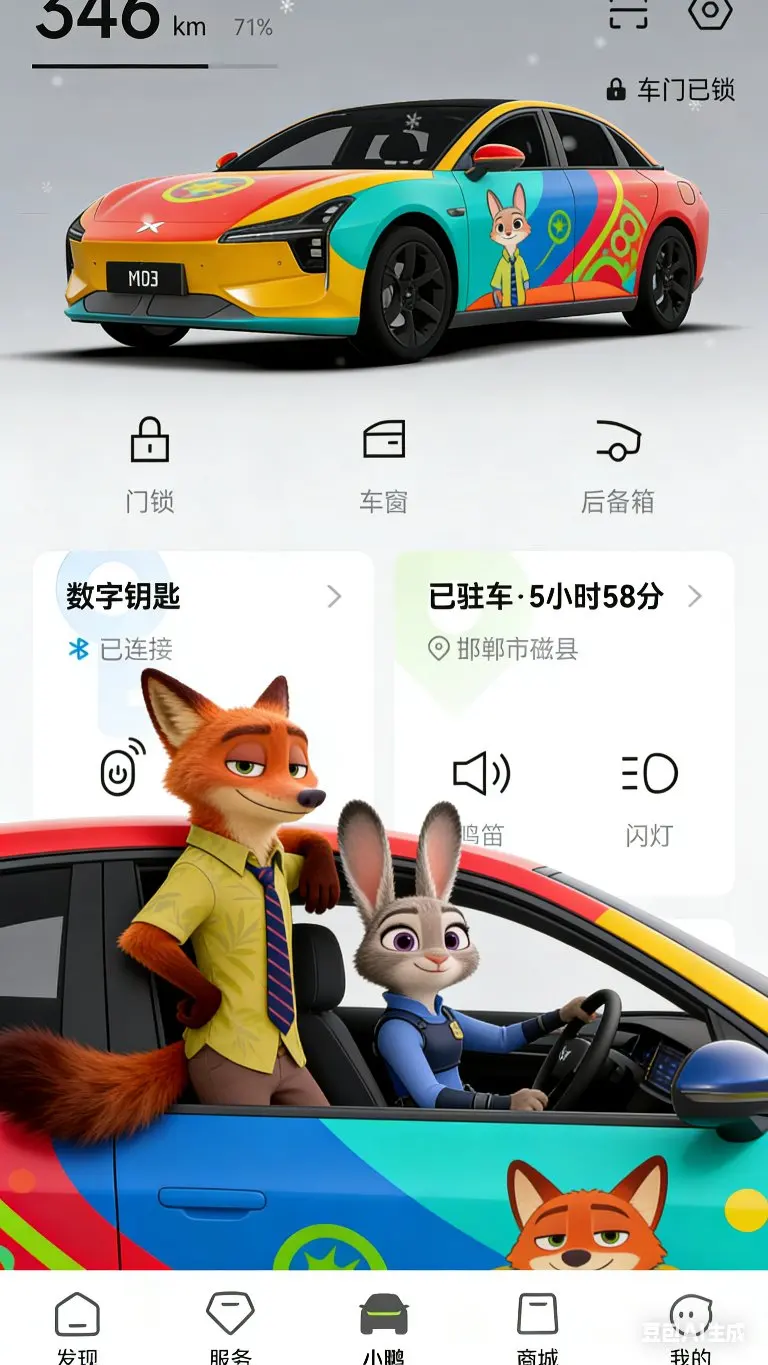 智能配置的惊喜,藏在每一个细节里。有次在商场地下停车场找不到车,慌慌张张打开小鹏APP,一键触发智能寻车,远处的MONA 03立刻鸣笛闪灯,顺着声音就能找到,科技感瞬间化解尴尬。还有一次雨天行车,不小心压到路肩,担心轮胎出问题,通过APP预约了附近的服务中心,不到一小时就进店检修。技师不仅做了四轮定位,还免费检查了电池底盘护板,临走时贴心充好电,提醒我雨季行车注意事项,这种“被记住”的温暖,远超预期 。OTA升级后新增的连续对话功能更让我爱不释手,不用反复喊“你好小P”,一句“调大音量,导航去磁县公园”,指令连贯响应迅速,仿佛在和老朋友聊天。