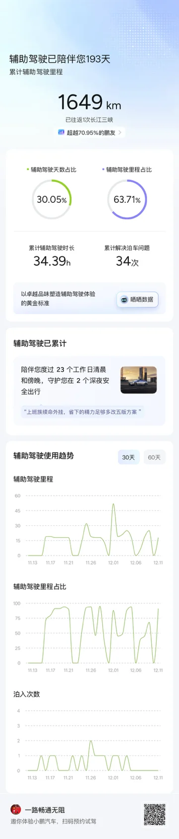 11月份开始浙江也开始降温了,低温对于新能源电池续航都是巨大的考验,小鹏G7总体能耗影响不大,基本维持下13个左右!还是不错的表现,智能辅助驾驶也相当流畅!表现非常的不错哈哈