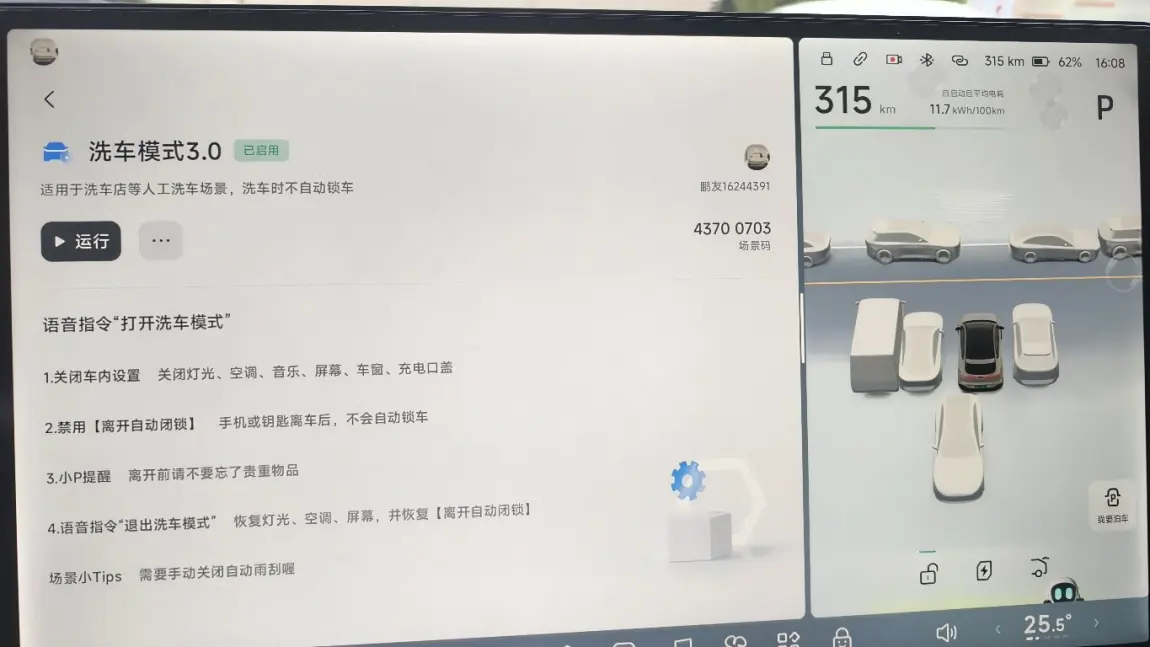 1️⃣ 洗车模式:再也不用对着师傅喊“别动我挡位!”了。一键全车锁止,后视镜自动折叠,屏幕全黑,像给车子穿上了“防误触盔甲”。每次洗车都能优雅离开,安全感拉满。