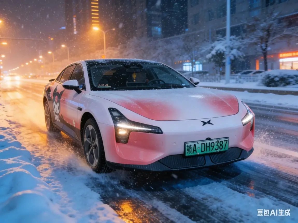 当小鹏MONA穿梭在漫天飞雪的南昌街巷,纯白车身与枝头凝霜、路面积雪相映成趣,科技感的利落线条在冬日冷调里愈发鲜明。雪花簌簌落在车顶,为这份现代感添了几分赣冬独有的温柔,行驶间扬起的雪沫,恰似与这座城的冬日私语。