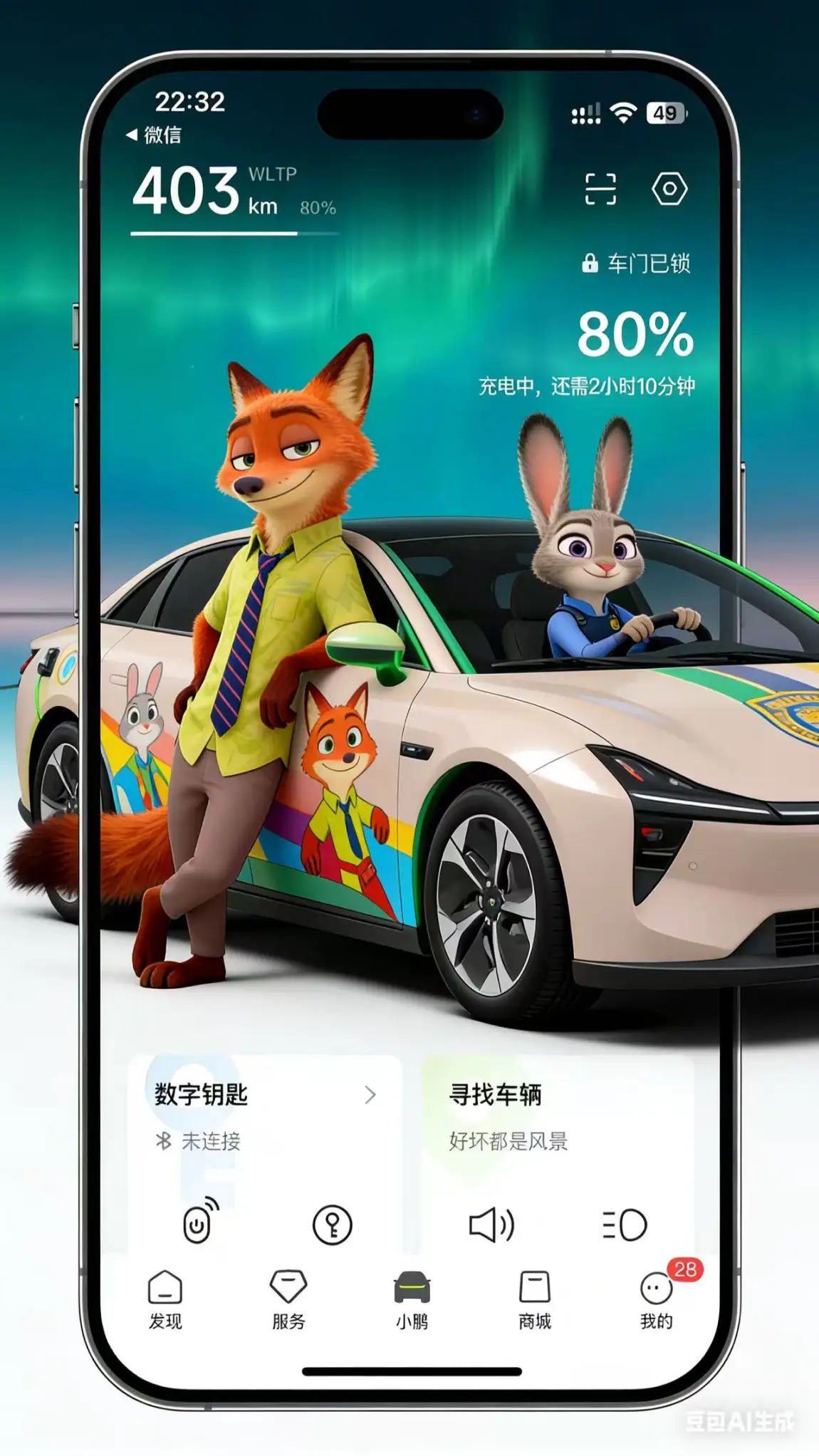 鹏友们,快快来生成你的专属MONA专属主页这也太酷了吧,用ai制作了一套独一无二的疯狂动物城主题背景!方法超简单:打开豆包,发送一张小鹏汽车页面截图➕指令:帮我生成三张图片:帮我P疯狂动物城2的尼克胡尼克和朱迪,尼克胡尼克靠背着车子,朱迪坐到主驾开车。原比例,车身颜色参考疯狂动物城配色元素,色彩丰富,背景不变,其他不变,视图不变,车的样子,其余细节不变。自从有了MONA出行更便捷,旅途更愉快,说走就走的旅行,小鹏伴你一路同行#小鹏MONA #小鹏汽车##朱迪#疯狂动物城