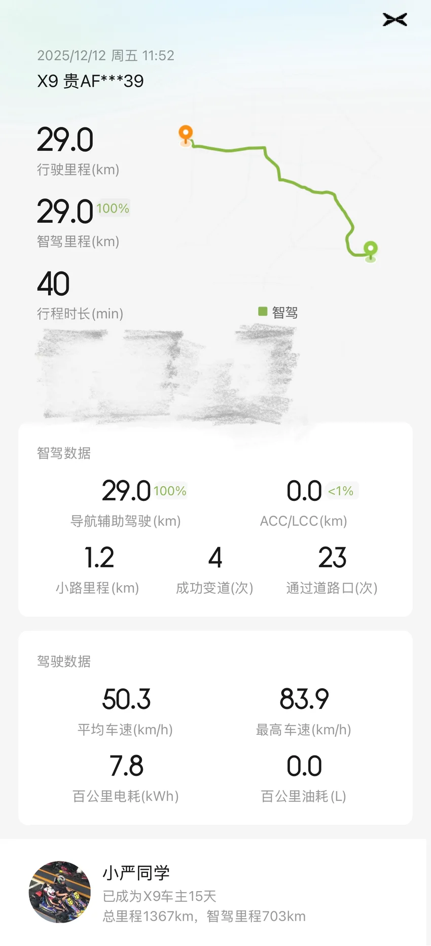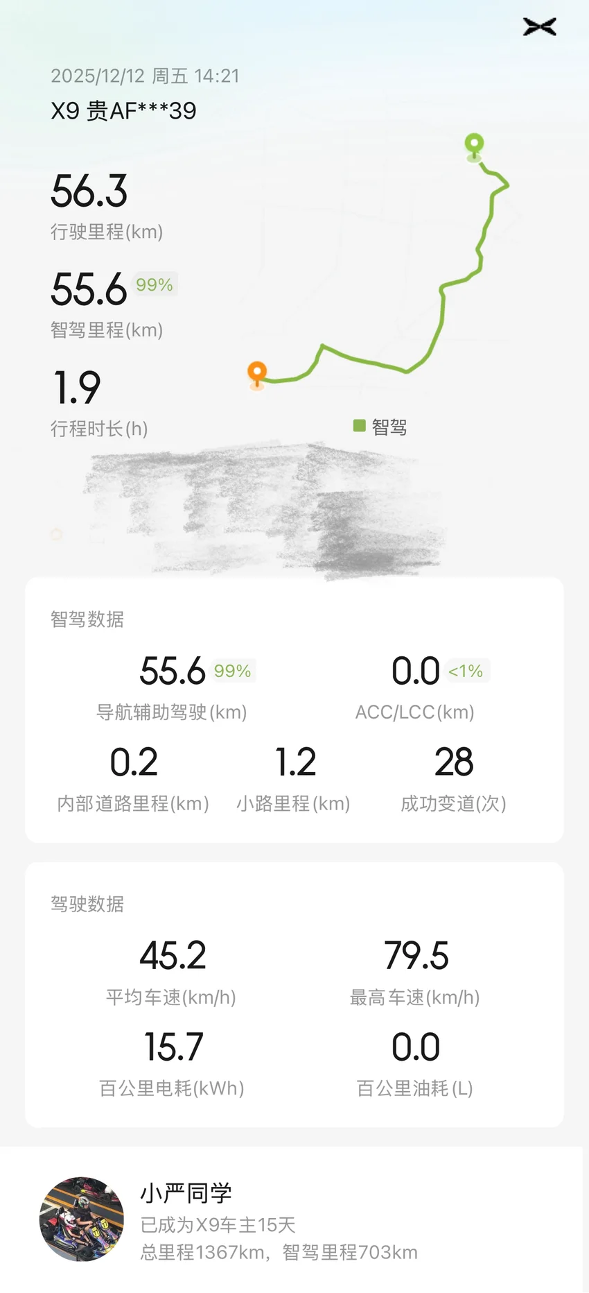 #我的2025小鹏印记# 今天重度体验了一下小鹏的智驾功能,路况还是比较复杂,会车变道路口这些情况都比较多。尽量不去干预,两段行程,智驾达成率几乎100%,总体来讲表现得还是很不错的,中途有两次人机共驾的干预,但是没有退出智驾。因为之前有一辆初代P7,还花了两万块钱买终生智驾升级,平时除了开长途外一直在用,五年来对一直在用。两相对比,新款X9 UItra版的智驾能力进步得已经不是一点半点了。今天刷到新闻关于小鹏明年的智驾赌约,挺期待的。