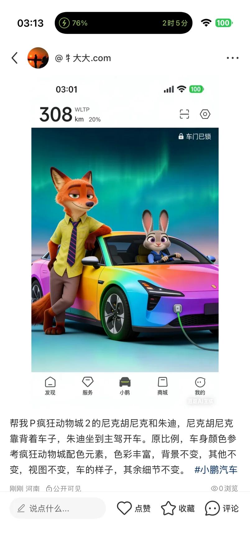 #小鹏汽车 #小鹏MONA,选带话题: #疯狂动物城 #朱迪 #尼克,