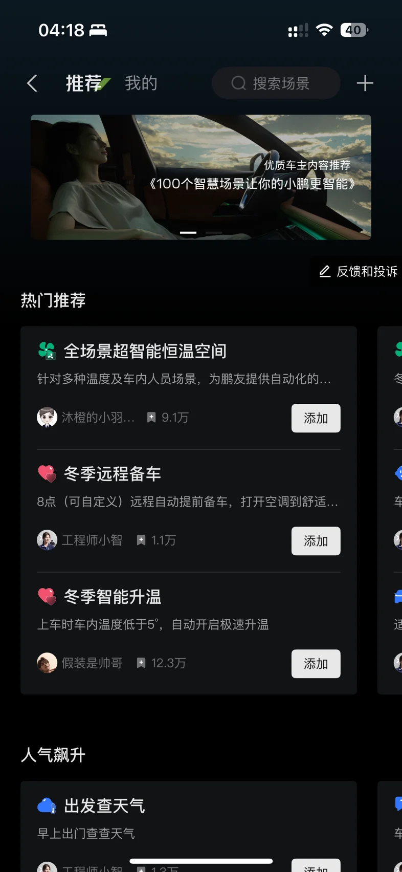 三:小鹏app自带的智慧场景!超级好用!一键设置!快捷方便!内有各种各样厉害的小伙伴创建的智慧!十分厉害!来可以分享自己的智慧!