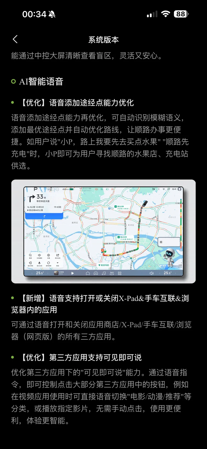 #我的2025小鹏印记# 新升级!新体验!为了记住新的升级项目,截图保存下来做纪念,也好一个个设置去对着操作。整个感受下来挺好的,特别是车位到车位的功能,刚开始用的时候觉得好惊艳,到舒服,但是有一处经过门禁的时候没有看到横杆?没太注意,总之体验感下来还是挺好的!希望能够让VLA成为全系标配!这样就更完美了!!!