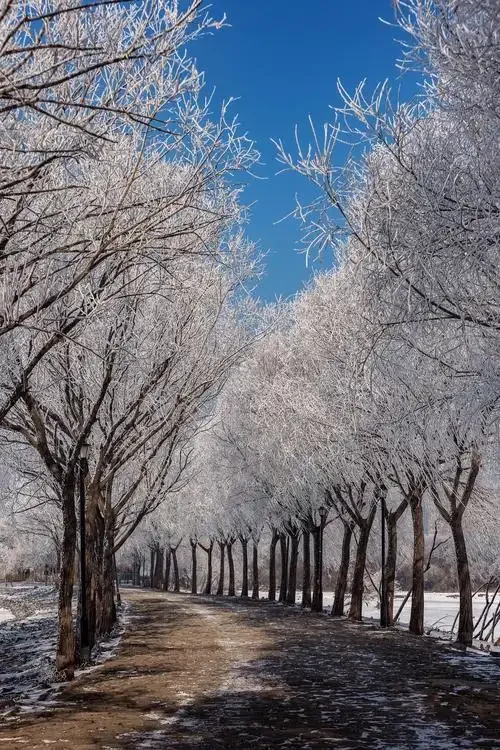 摄影指南:雪乡日出时分(7:00-8:00)蓝调时刻绝美,长白山温泉用长曝光捕捉雾气流动。构图推荐:雪地脚印+远处雾凇树形成延伸线,后期调色偏冷色突出冰雪质感。