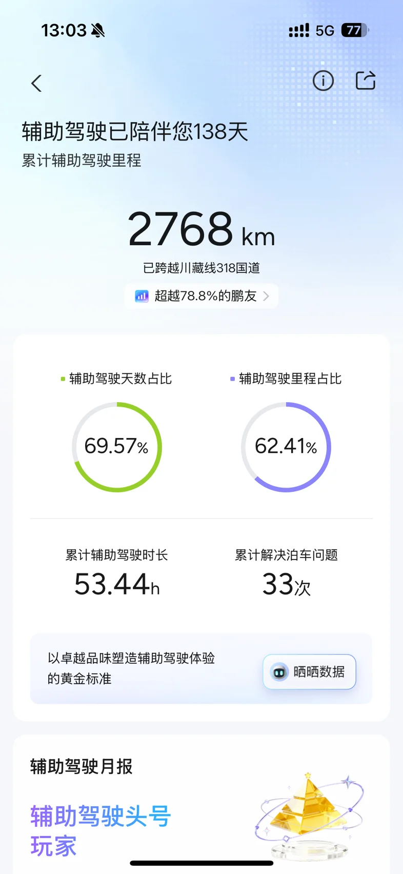 #我的2025小鹏印记# 提车后靠NGP跑了4000多公里,现在主要用于上下班通勤,大部分时候保持60-70%的情况都是交给ngp,目前感觉超车、并线、转向等行为都能做得非常流畅,特别是车跟车的博弈,系统都能做得非常拟人,不会有太激进或者犹豫的感觉。出外时,高速上使用NGP能减轻很多驾驶疲劳,丝滑跟车、超车、变道、通过收费站,新版本也解决了上个版本的诸多问题,如“风琴脚”、跟车距离过远等问题,希望以后NPG能继续优化变道时机、变道逻辑。