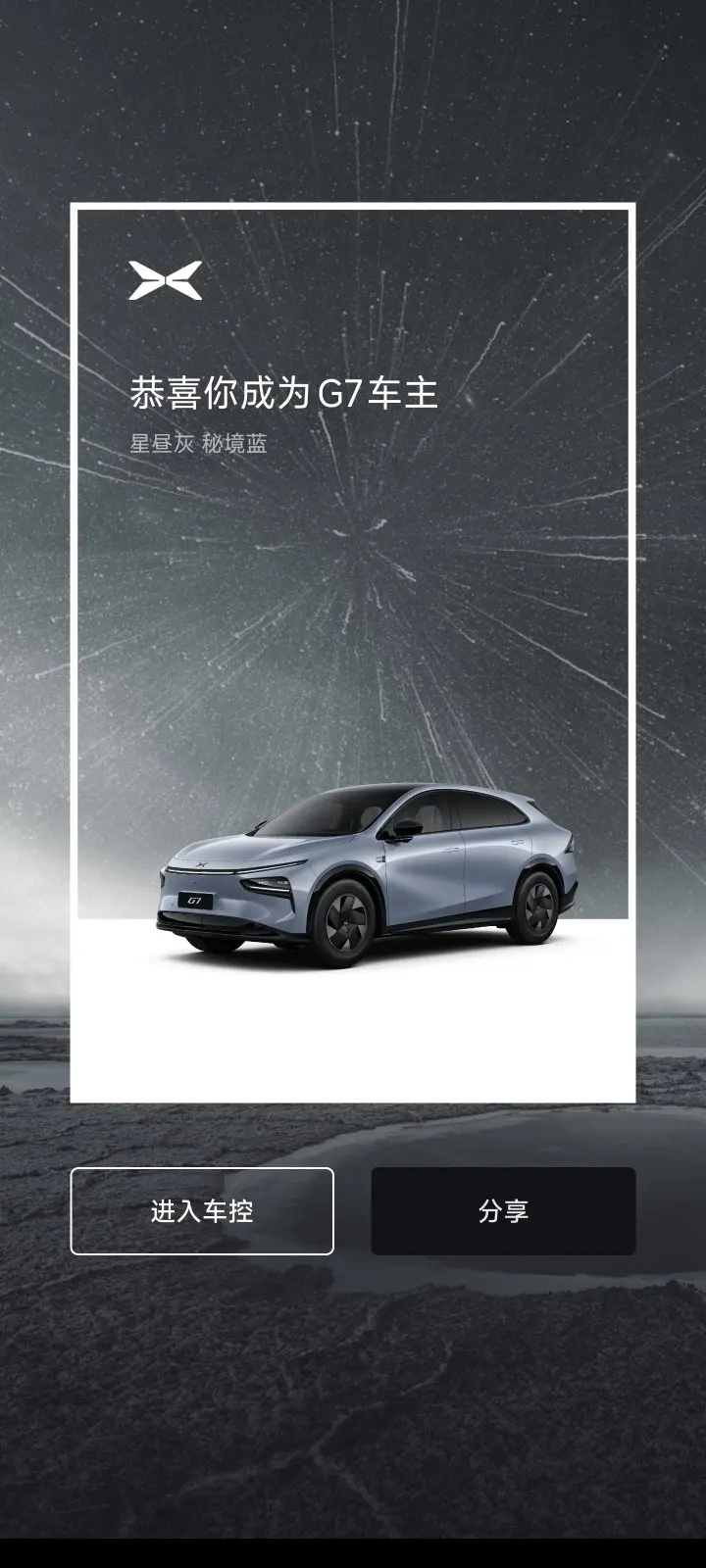 时间定格在昨天,手机里“车辆已交付”的状态,终于变成了眼前这辆帅气的星昼灰G7!📱→🚗