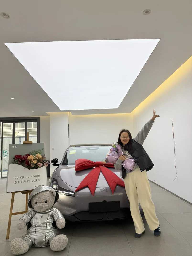 #我的提车作业# ✌️✌️✌️终于拥有了第一辆车!一个朋友推荐后就被种草了,看车对比了几家,最后到小鹏店里试驾就定下啦,性价比高,加智驾,还是我爱的紫色,配上弟妹送的紫色花花,更搭配。提车交付人员提前确认好时间,当天就去选车牌,而且运气很好的选到了FA➕88,直接开车回家啦!不过第一次自动泊车没成功😭还求助了其他司机,挡了一会路,看来还是不能太依靠,自己也要多学多开。愿以后都是安安全全顺顺利利。