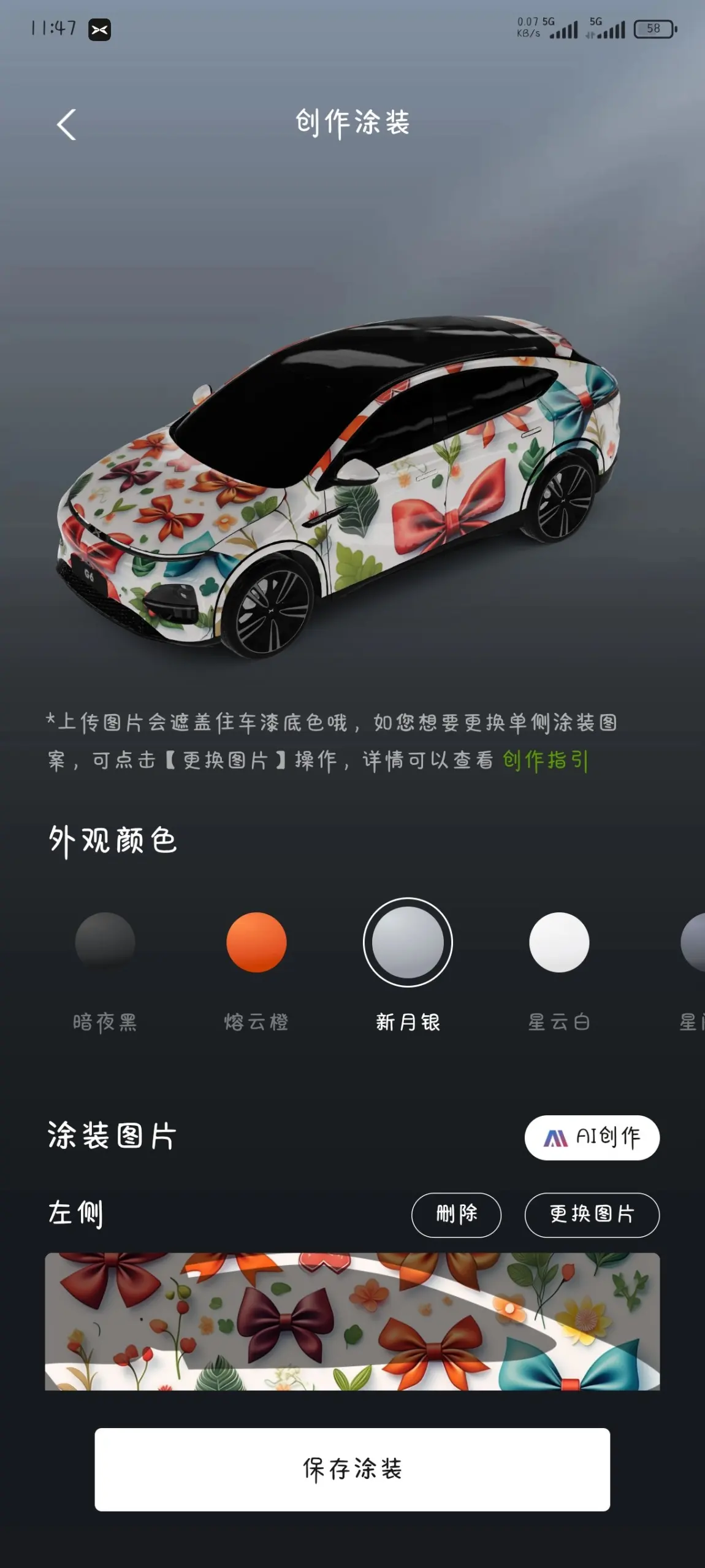 #我的圣诞魔力座驾# 这款涂装设计以“甜美自然派对”为主题,为SUV塑造出灵动活泼的视觉形象。核心设计元素选用鲜艳的红色与粉色蝴蝶结,错落点缀于车身,搭配清新绿叶与绽放的花朵,构成一幅春日花园般的浪漫图景。色彩以暖色调为主,通过高饱和度的红蓝对比营造出欢快的节奏感,而自然元素的加入则柔和了整体氛围,增添了几分清新与生机。图案布局疏密有致,既保留了车体流线,又通过AI生成实现了创意与韵律的巧妙平衡,最终呈现出可爱又不失个性的整车涂装效果。