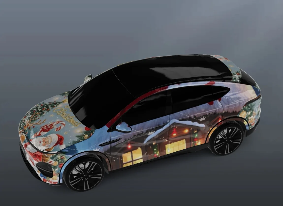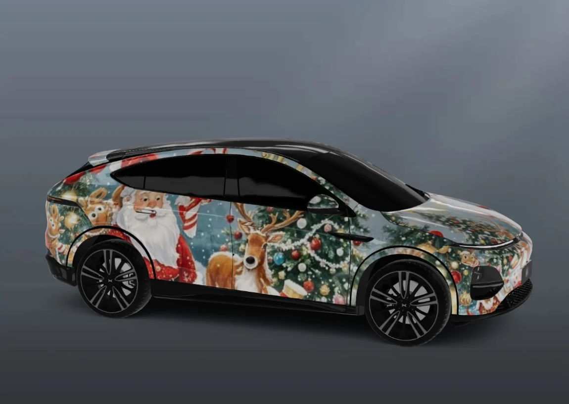 #我的圣诞魔力座驾# 圣诞季的浪漫被小鹏G6拿捏了!这款定制圣诞涂装以圣诞老人、驯鹿、圣诞树为核心元素,写实插画风格的图案铺满车身,红绿色调的经典圣诞配色与小鹏G6的星暮紫车身底色形成巧妙呼应,黑色车顶和轮毂又让整体造型不失科技感。流畅的溜背线条让涂装画面更具延伸感,贯穿式灯带与圣诞元素的衔接,让这款纯电SUV在节日里既保留了科技属性,又多了几分温馨的童话气息,堪称圣诞出行的吸睛利器。