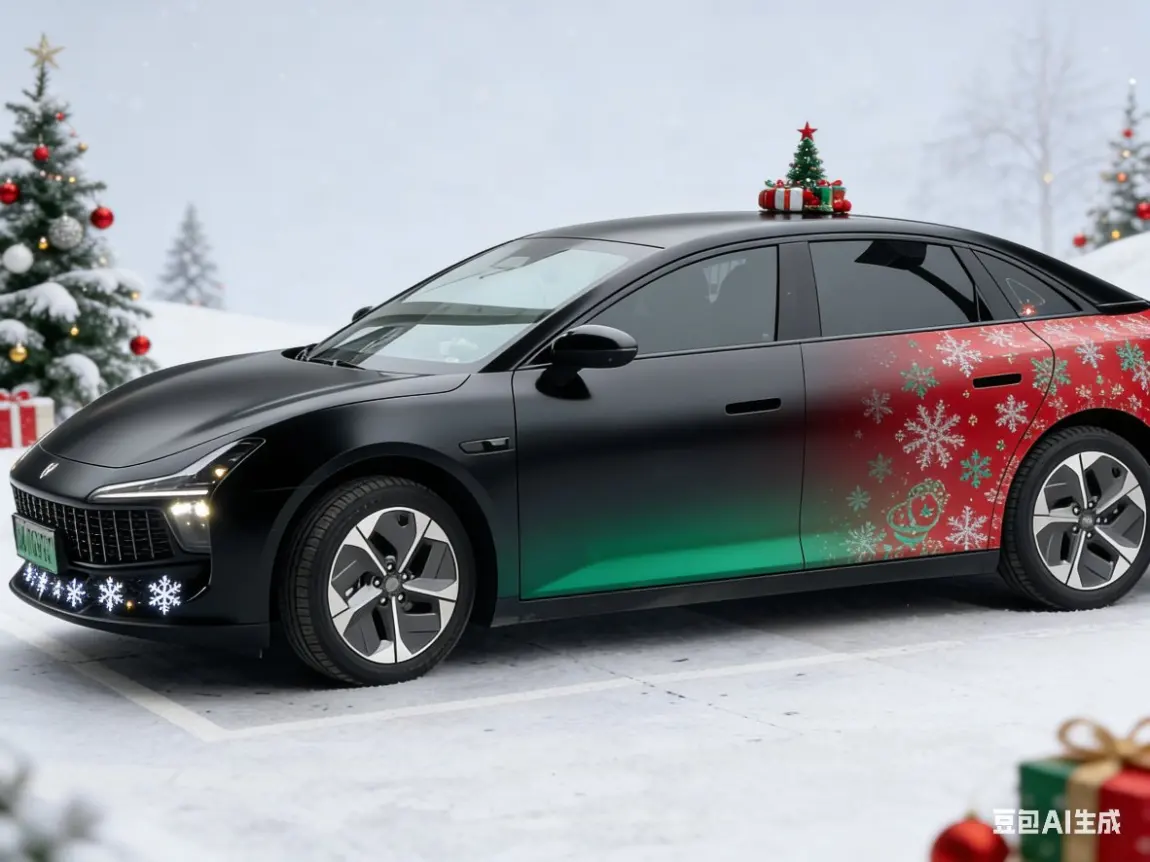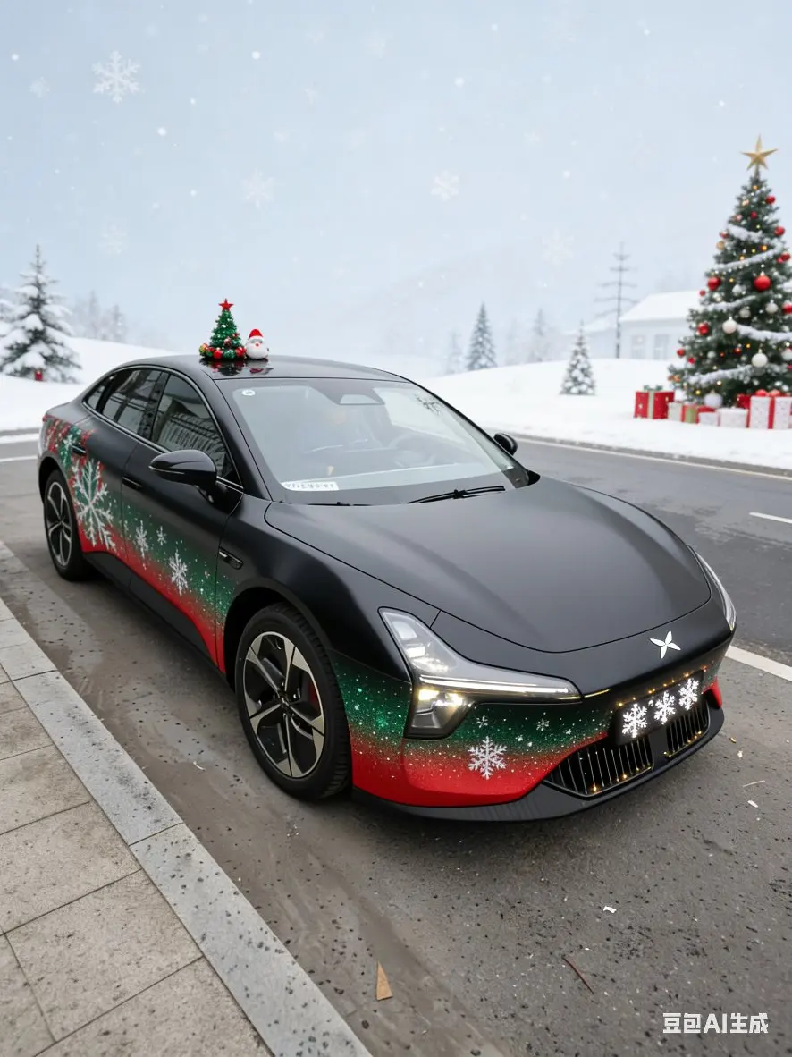 #我的圣诞魔力座驾# 哑光黑的小鹏MONA化身圣诞限定座驾,车身侧畔红绿色圣诞花纹顺着流线渐变晕开,前脸格栅嵌着细碎的雪花灯效眨着微光,车顶的迷你圣诞装饰俏皮又可爱。冷峻的科技线条撞上暖融融的圣诞氛围,硬核座驾也染上了冬日的浪漫,圣诞出行的仪式感,被这台黑武士拉满~
