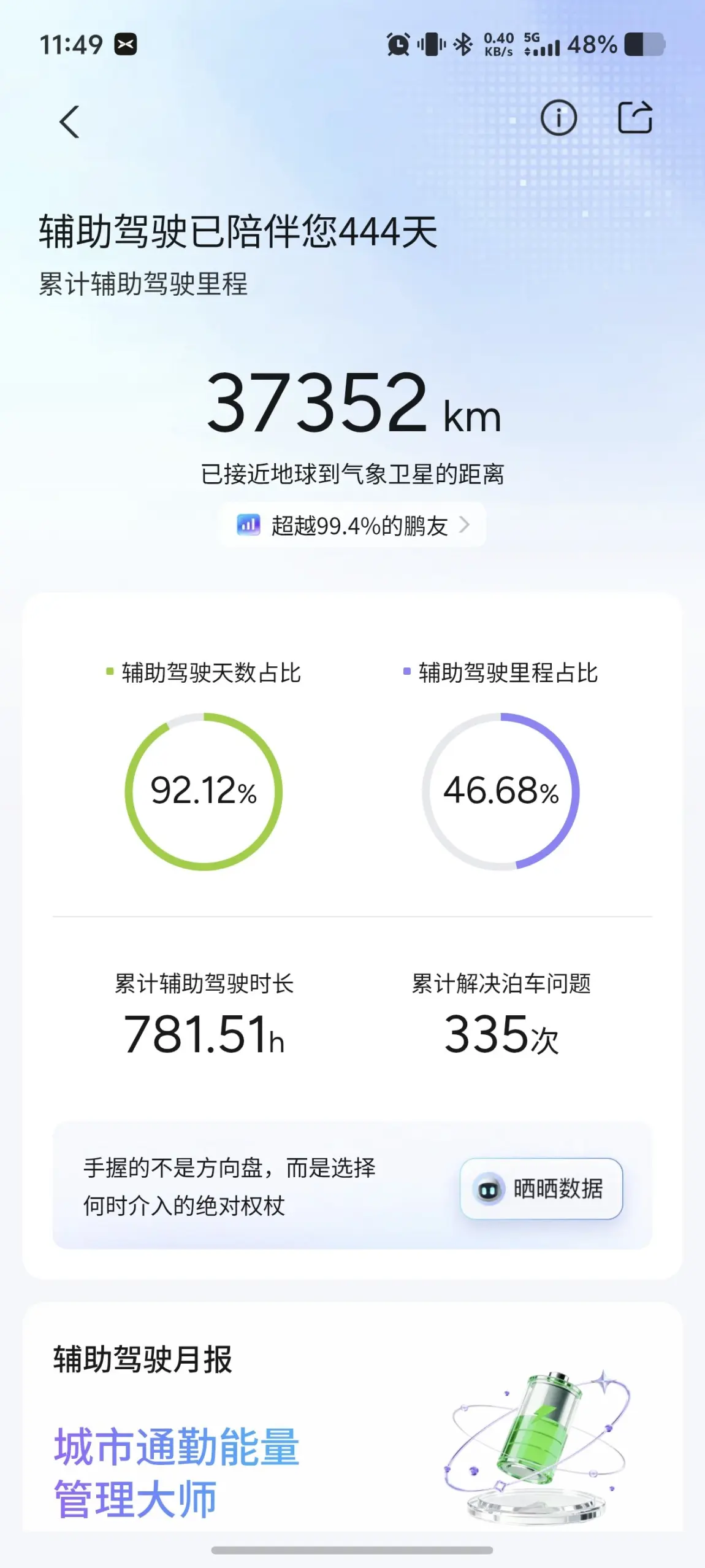 老6今天已经8万公里了,记录下哈,去年8月接手是2.8万,也开了不少了。智驾里程算法不对嘛,分母不能是车辆总里程哈,应该是444天之前的里程到今天的嘛,是不是数据库没有这个字段哈