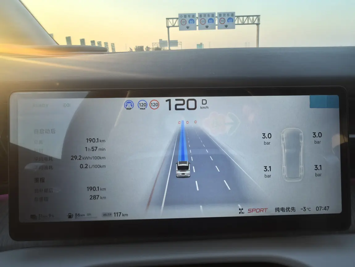 为了赶上青岛购车补贴,提车后立马开着X9跑了趟青岛上牌,来回千公里的高速路,把新车的性能摸了个透。官方标注的350+km纯电续航,实际跑到剩10%电只跑了212km,能耗比预想的高了些,这点算是小遗憾。