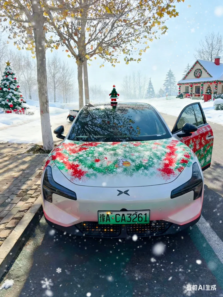 #我的圣诞魔力座驾# 用豆包对我的小鹏M03生成了一些图,圣诞妆也太戳我了车身红绿色渐变花纹和圣诞超配,前脸雪花灯效一闪一闪的,车顶的小圣诞装饰萌到心坎里~原本就爱惨了它的颜值和智能,圣诞妆直接让我的“梦中情车”氛围感拉满,这个圣诞开着它出门,回头率直接翻倍!