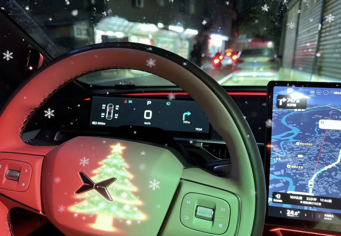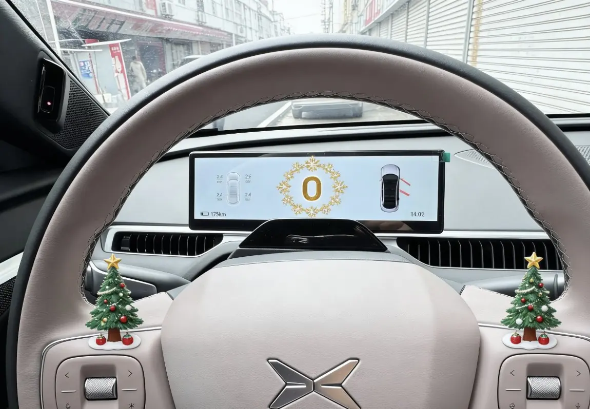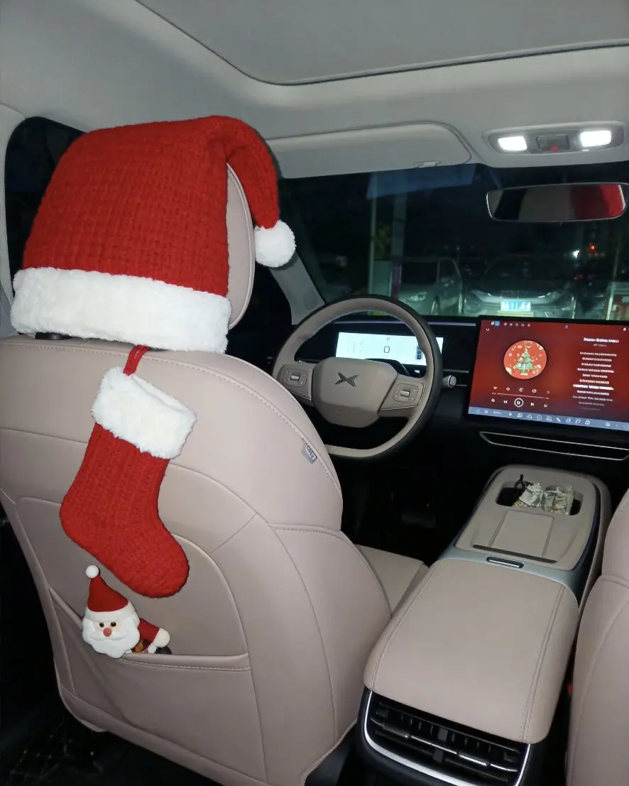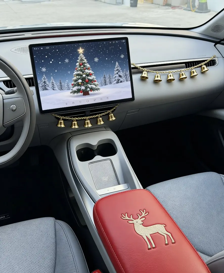 #我的圣诞魔力座驾# 这组小鹏M03圣诞内饰涂装走细节点睛的路线,氛围感拉满又不杂乱。方向盘圣诞帽、中控金色铃铛串、迷你圣诞树摆件等小装饰,贴合原车内饰布局;屏幕圣诞壁纸、方向盘投影圣诞树与雪花特效,融合科技感与节日感;座椅圣诞袜、麋鹿扶手箱贴则添了温馨感,整体装饰简约不破坏原车质感,年轻又有创意。
