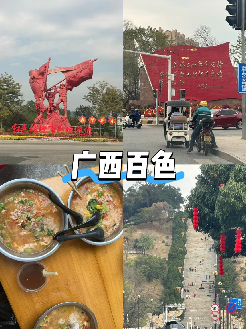 1月29日出发,开了400多公里后到了百色。刚到就找地方吃饭,点了当地特色老友粉。一进这座城,就能感受到红色革命的气息。街道上的标语、老建筑的风格,都带着历史的印记。充完电,在附近转了转,看了看当地的街景。休息够了,继续往下一站走。这段路,充电时的停留,成了认识一座城的简单方式。父母虽然是广西的,但是这座城市却是第一次来。