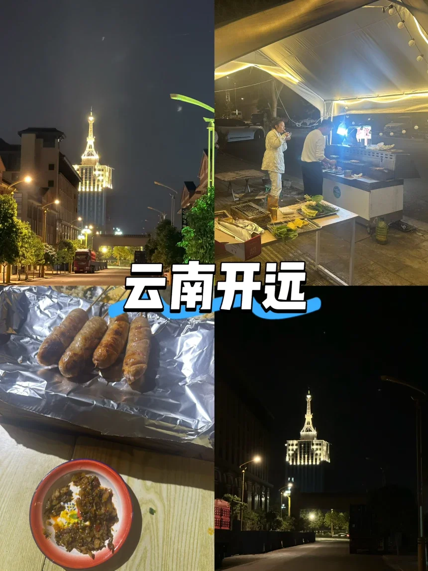第五天开始返程,全程1000多公里。路过云南开远市时,给P7充了电。这座城市人口不多,安静又舒适。到开远已是晚上,在充电站附近几百米找了家店点了烧烤。慢慢吃完,休息够了就继续上路。