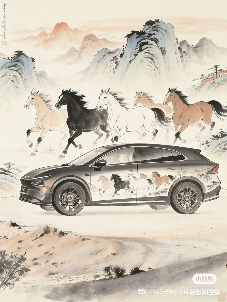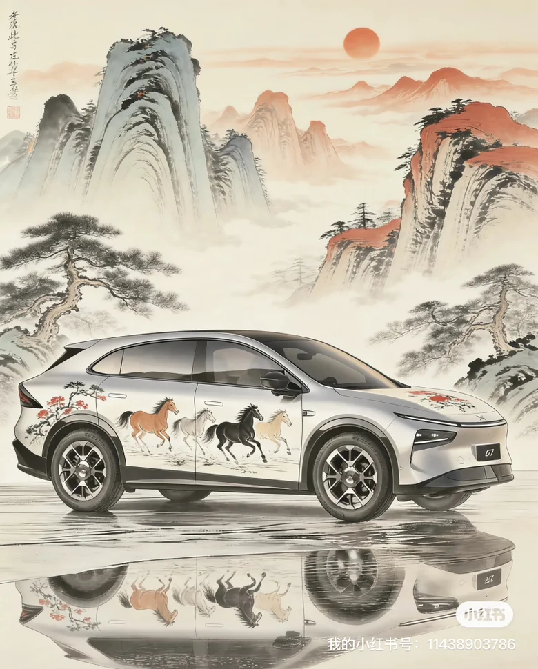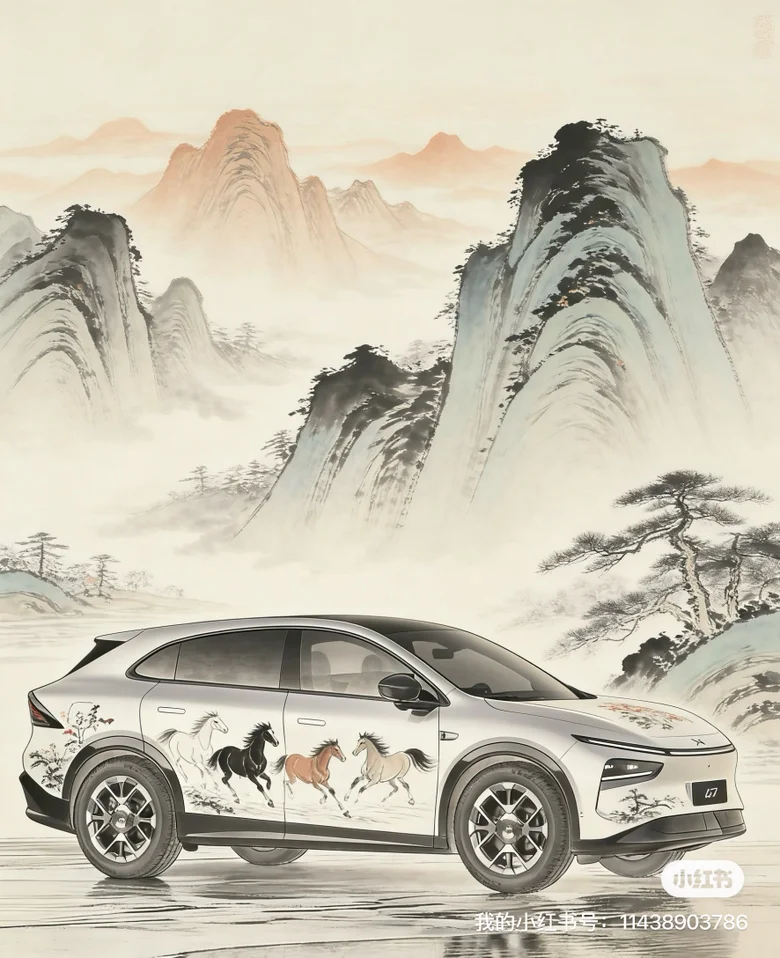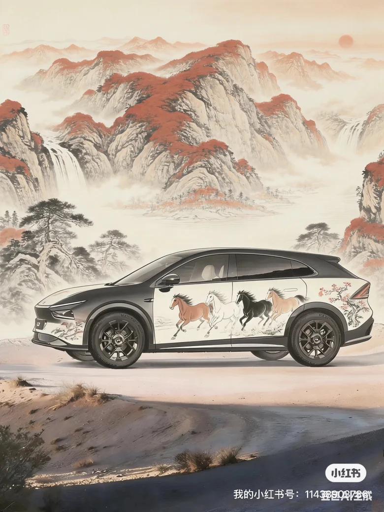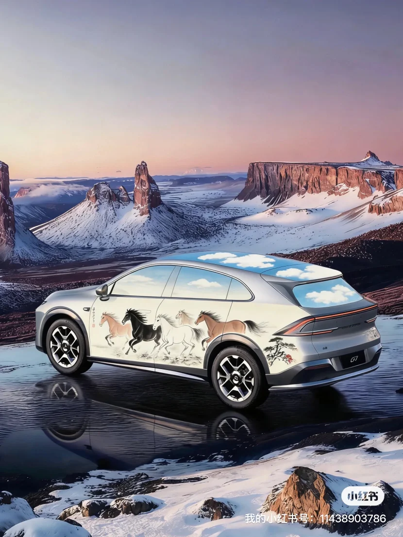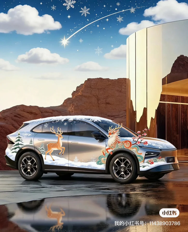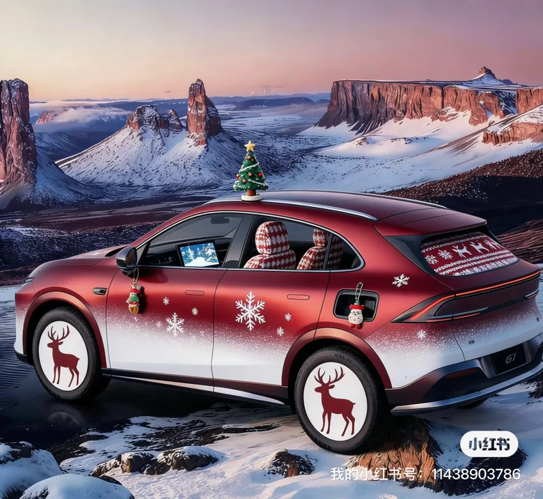 #我的圣诞魔力座驾# 双旦将至,小鹏G7一车多风格的潮改将中西美学在车身完美交融:左侧是圣诞麋鹿踏雪的童话意境,右侧是国风瑞兽衔梅的祥瑞韵味,哑光圣诞红搭配雪花渐变涂装,轮毂麋鹿贴纸、车顶迷你圣诞树更添节日氛围;切换国风模式,齐白石风格的万马奔腾图跃然车身,搭配江山如此多娇的壮阔背景,车顶蓝天白云与圣诞星轨交织,科技座驾秒变移动艺术展。@鹏友俱乐部 @小鹏友 @鹏友大管家 @小鹏资讯 @社区活动小姐姐