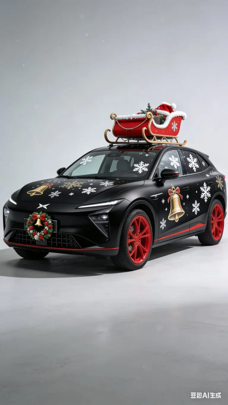 #我的圣诞魔力座驾# 【小鹏2025款G6圣诞限定涂装】——「雪夜驯鹿·电掣星驰」 以哑光黑车身为雪原画布,车顶红色雪橇装饰复刻圣诞老人座驾轮廓,19英寸轮毂喷绘冬日红铜漆,转动时如驯鹿踏雪的蹄印。侧身金色铃铛与雪花镭射贴纸随光线折射出圣诞光晕,前脸格栅嵌入可发光LED圣诞花环,充电口盖暗藏「Merry Xmas」投影灯,解锁瞬间投射节日问候。当续航模式切换为「圣诞节能模式」,中控屏将飘落动态雪花,配合车载香氛系统释放松针与肉桂香气,让每一次驾驶都成为移动的圣诞颂歌。