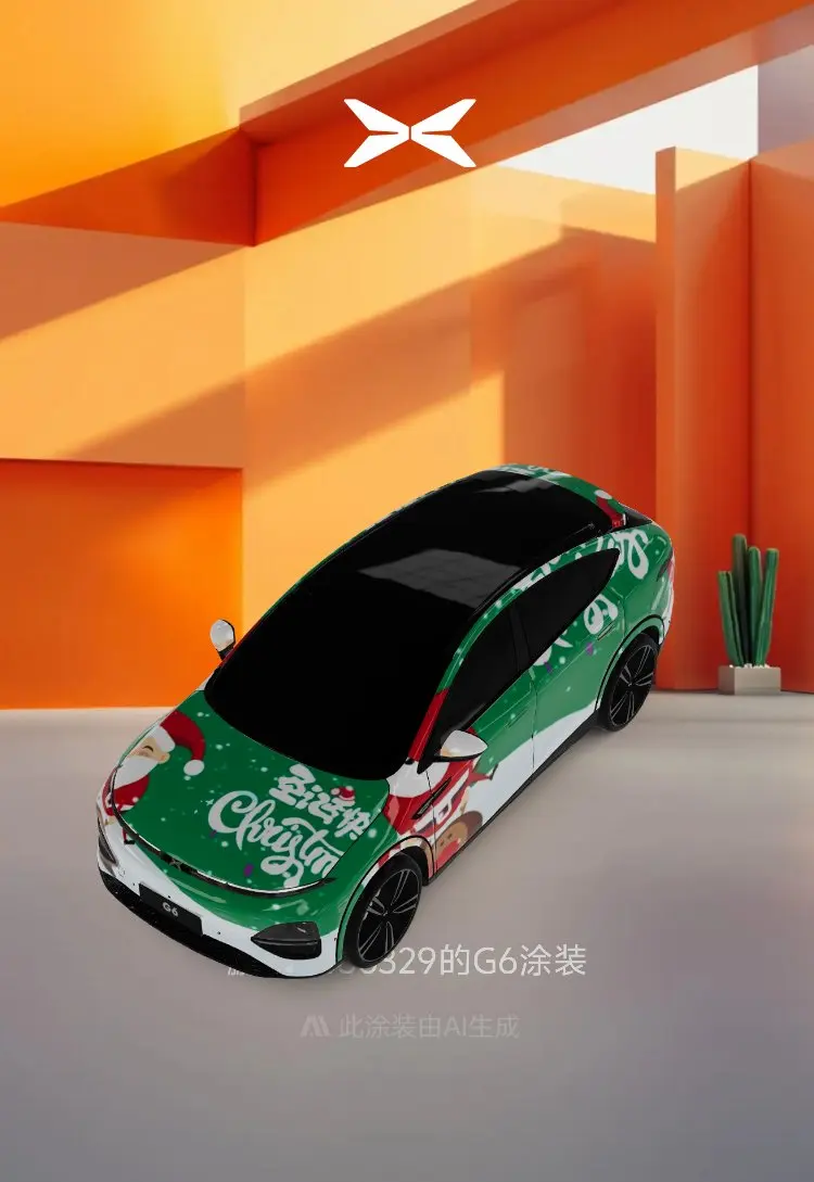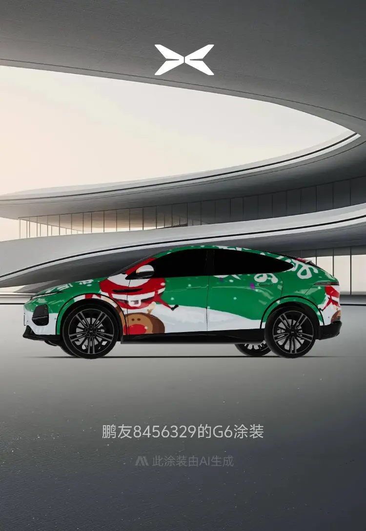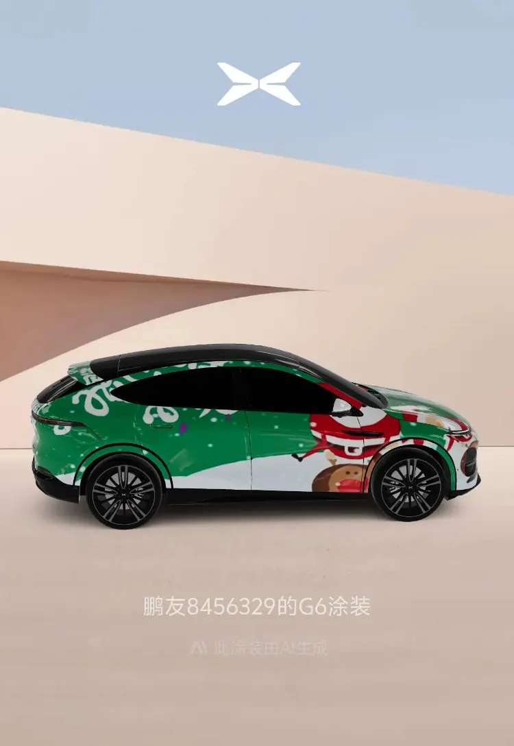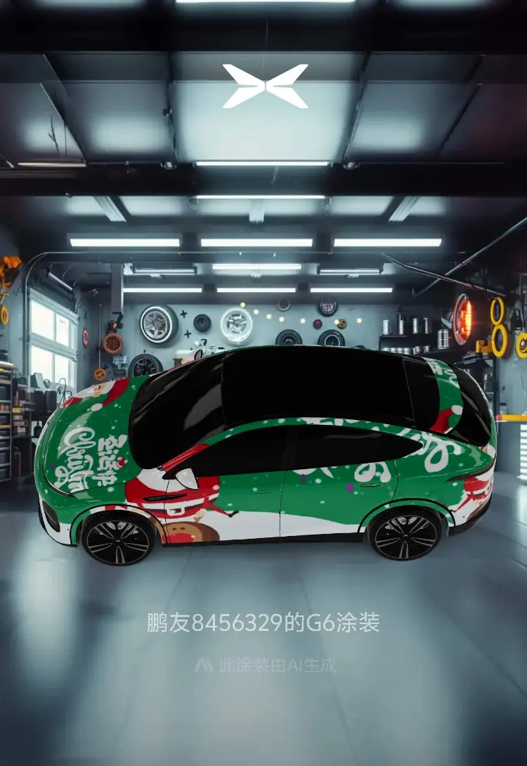 #我的圣诞魔力座驾# 圣诞节要来了,我的小鹏G6也披上了圣诞的衣服,整体上以绿色圣诞树为主色,主副驾配以圣诞老人的红色,前机盖和车身上下侧涂上白色底色及圣诞快乐的英文字母,整体上非常拉风,低调而又不沉闷,太酷了!