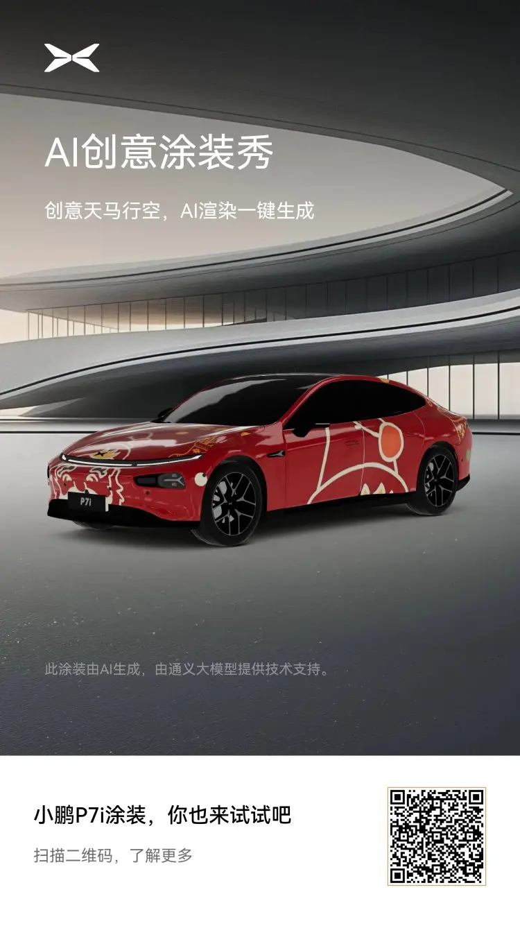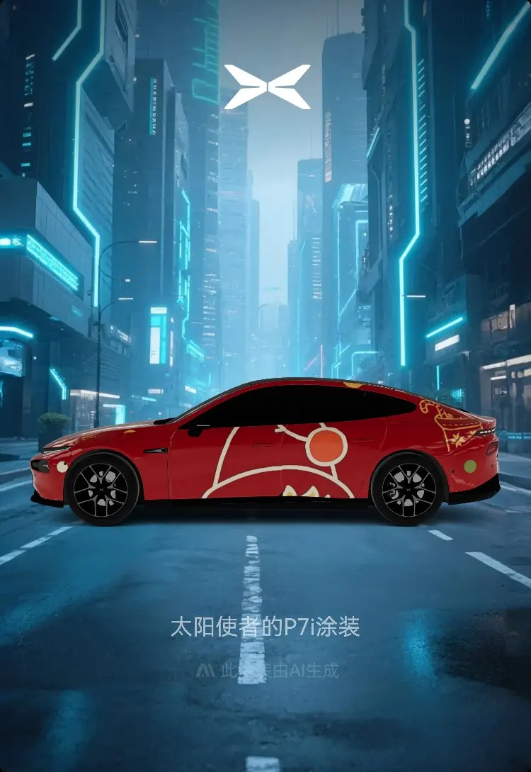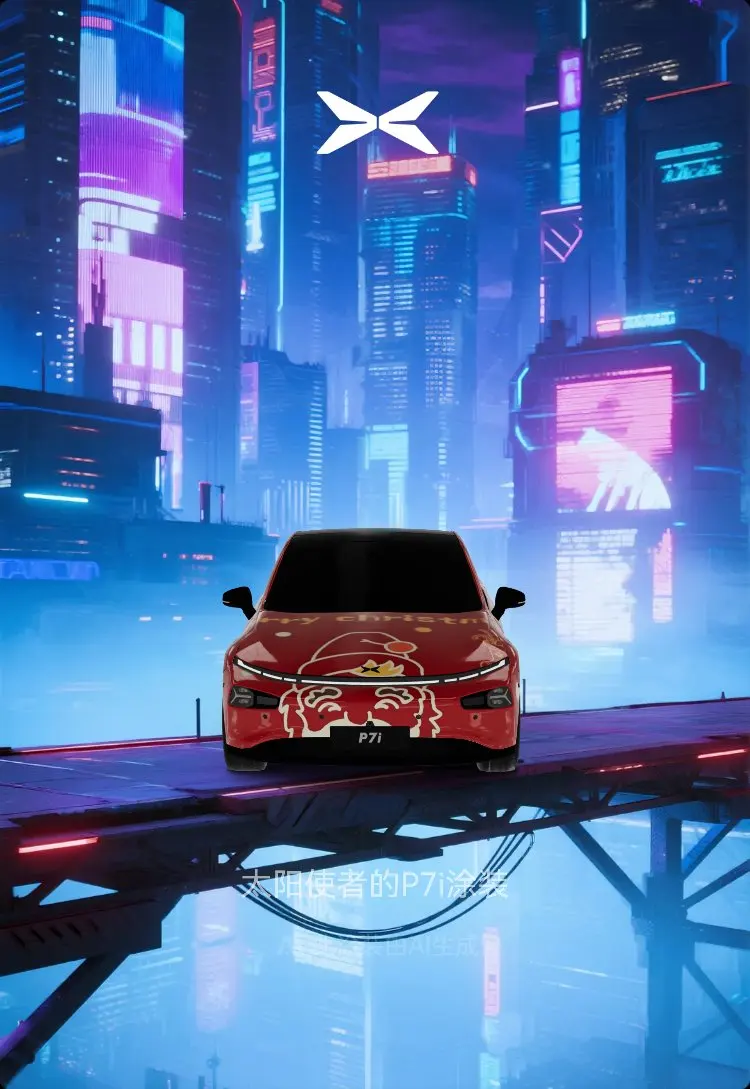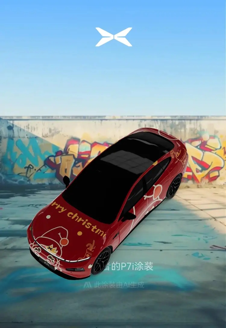 圣诞节快到了,为了塑造圣诞气氛,我用小鹏app的AI创作功能给我的小鹏P7来了个大换装。圣诞红加圣诞老人涂装到P7上,节日气氛瞬间拉满。