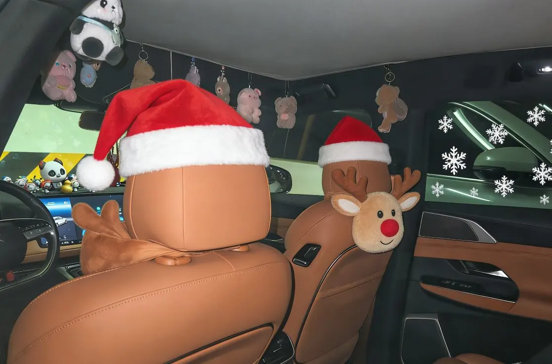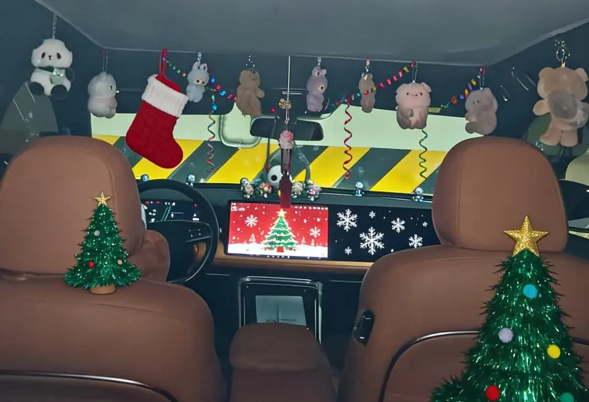 圣诞的铃铛摇响啦,车里挂满软乎乎的玩偶,就像把圣诞童话藏进了专属座舱~愿这一路有星光、有温暖,圣诞快乐呀,愿每次出发都能奔赴美好🎄