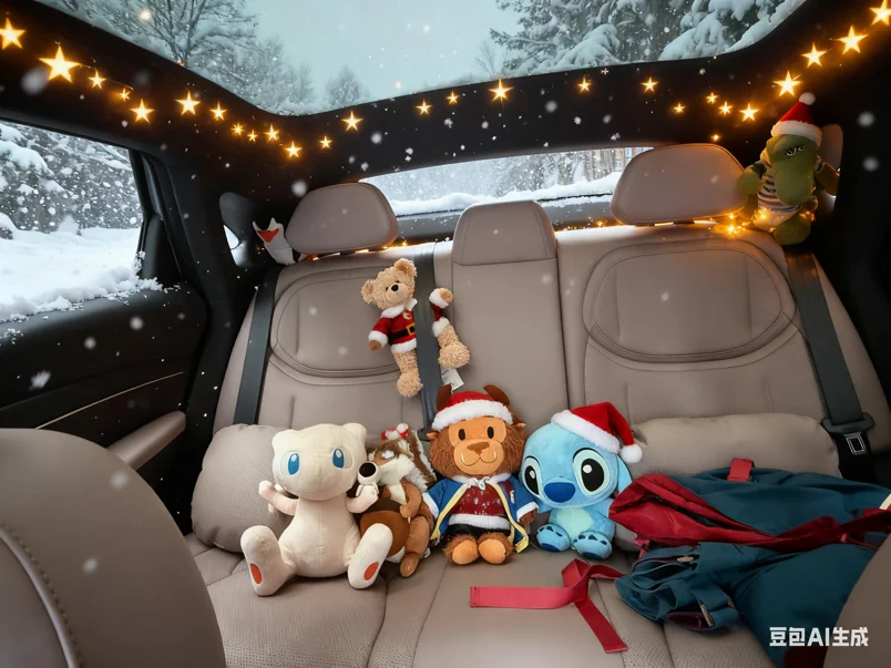 #我的圣诞魔力座驾# 叮叮当叮叮当~期待假期开到一片下满雪的森林,把车里所有公仔布置成圣诞模样,车顶围绕一圈星星点点的氛围灯。想象一下,太阳渐渐落下,周围环境光线随着车内的氛围灯渐渐变暗,车内星光灯闪烁,把车外所有灯光打开,照亮四周,和穿着鲜艳服装的家人朋友在雪地里玩耍,好温馨