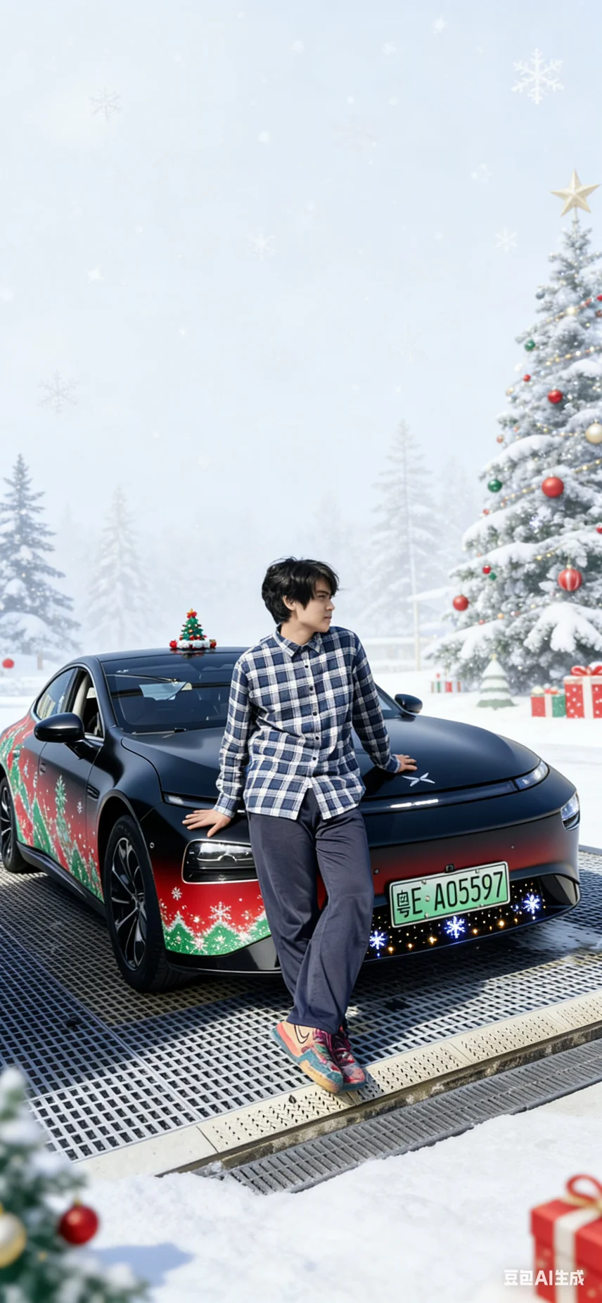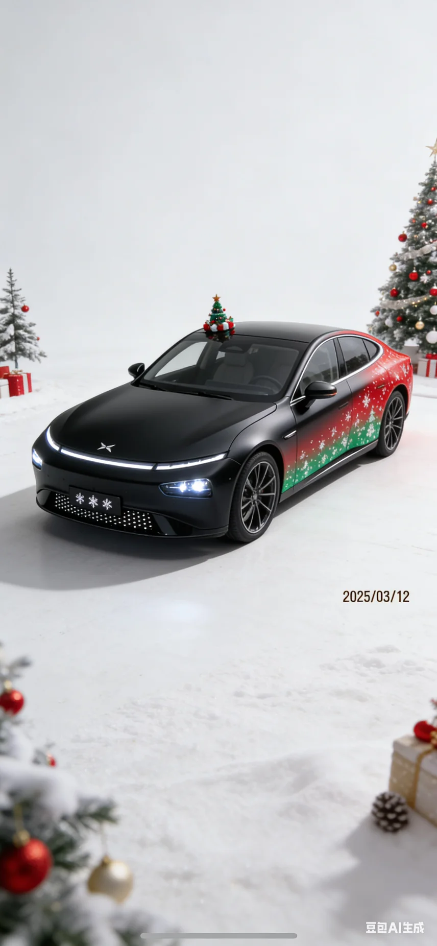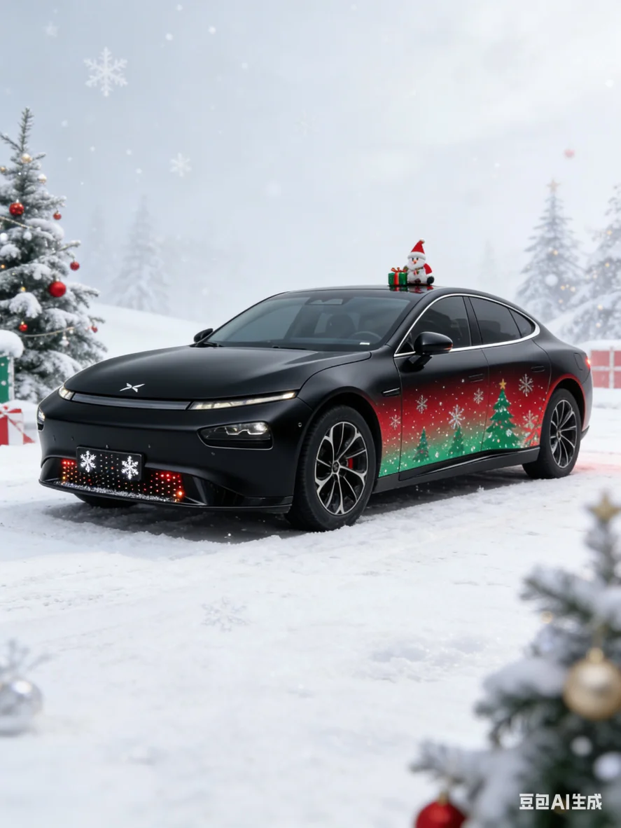 #我的圣诞魔力座驾# 给爱车换上圣诞限定皮肤啦!哑光黑车身自带高级感滤镜,侧面红绿色花纹像裹了层圣诞糖霜慢慢晕开,前脸格栅的迷你雪花灯一亮就有节日氛围,车顶小装饰轻轻晃,开在路上连风都带着圣诞的甜,这才是冬天出门的正确仪式感~