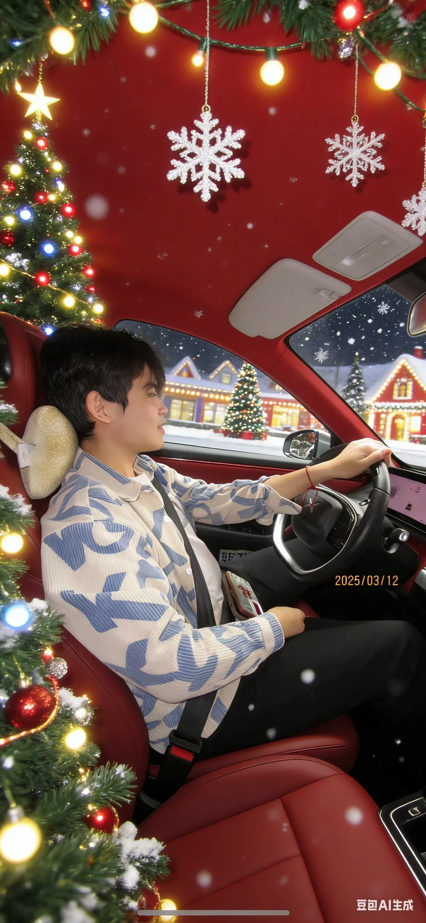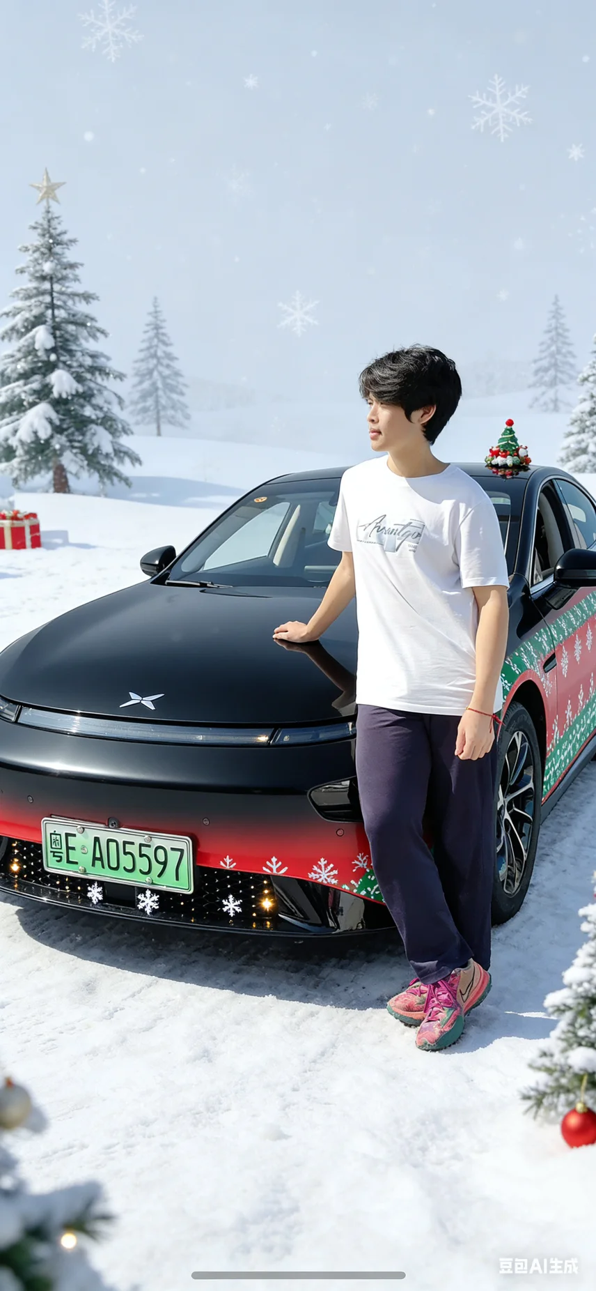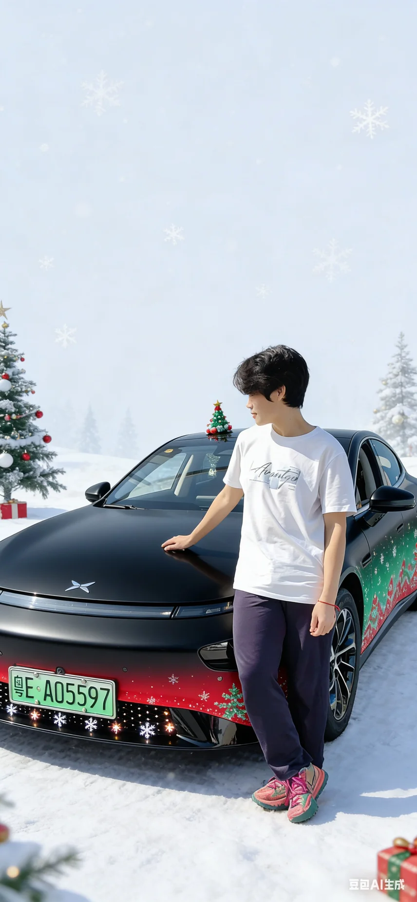 #我的圣诞魔力座驾# 给爱车换上圣诞限定皮肤啦!哑光黑车身自带高级感滤镜,侧面红绿色花纹像裹了层圣诞糖霜慢慢晕开,前脸格栅的迷你雪花灯一亮就有节日氛围,车顶小装饰轻轻晃,开在路上连风都带着圣诞的甜,这才是冬天出门的正确仪式感~